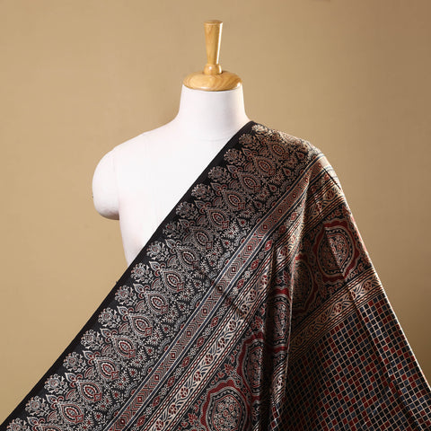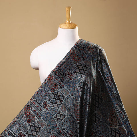 Ajrakh Modal Silk: Known for its luxurious drape and smooth texture, Ajrakh modal silk is perfect for creating elegant garments. The modal silk variant is a blend of natural fibers that enhances the softness and durability of the fabric, making it a favorite among designers and craft enthusiasts.
