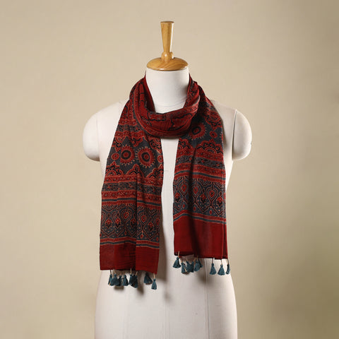 Sufiyan Khatri Special Cotton Ajrakh Hand Block Print with Zari Border Dupatta: If you are looking for an Ajrakh block printed dupatta but a different one than the one listed above, you should take a look at this cotton ajrakh printed dupatta that features zari work at the border.