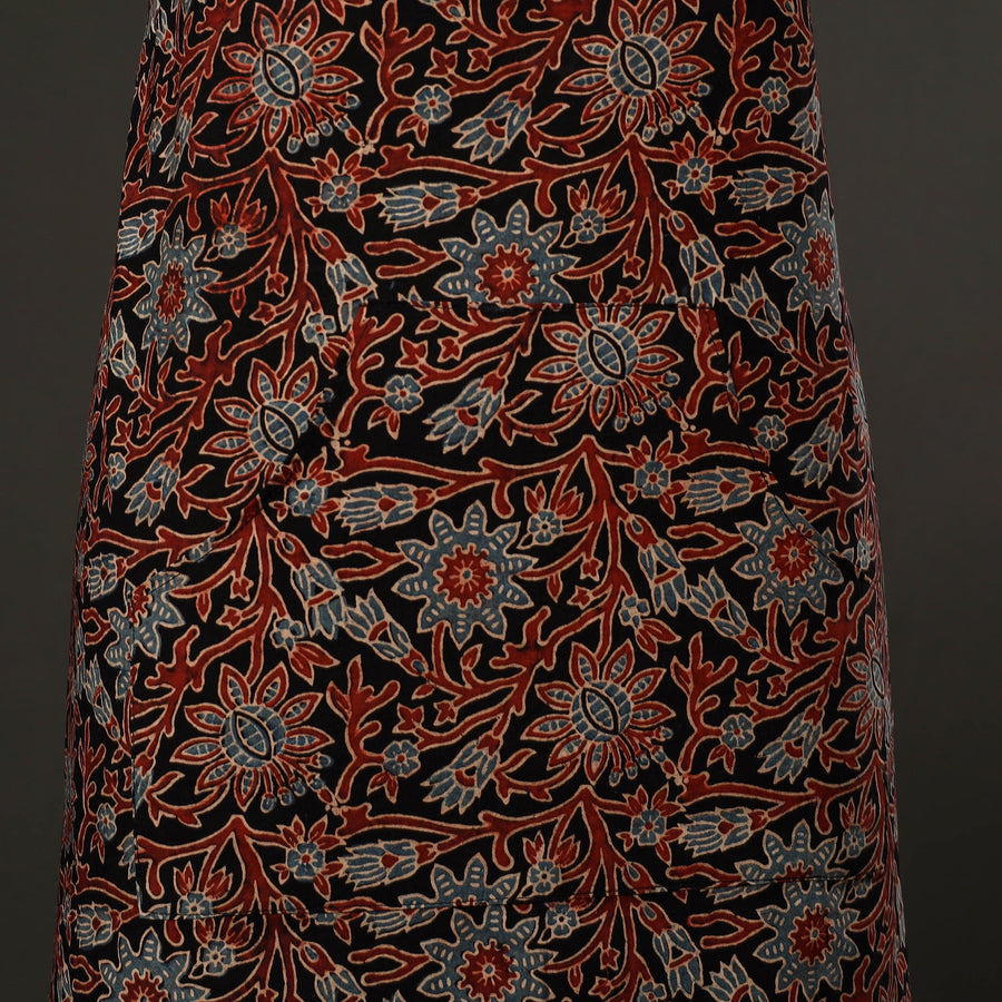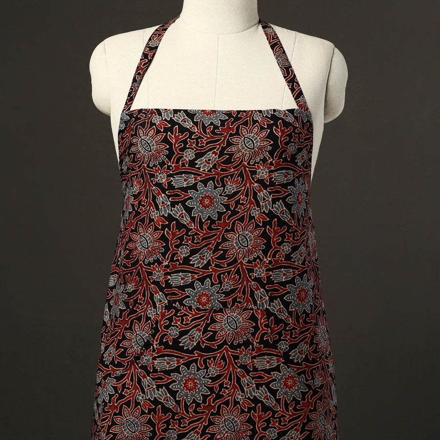 This black ajrakh print cotton apron with pocket, crafted with traditional ajrakh block printing, combines cultural artistry with everyday functionality. Adorned with ajrakh prints, it features a convenient front pocket and adjustable straps for a comfortable fit. Perfect for cooking, baking, or grilling, this apron adds style and convenience to your kitchen essentials.