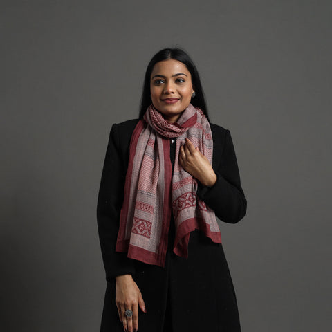 Bagru Dabu Block Print Stoles :- Stoles featuring earthy, rustic patterns created through the traditional dabu mud-resist technique, unique to Bagru, Rajasthan.