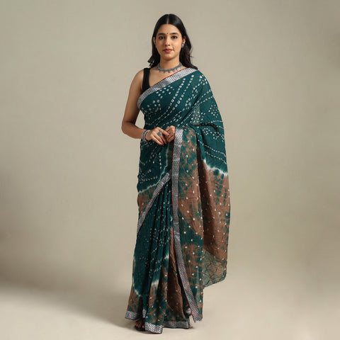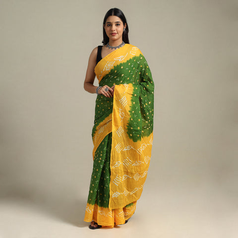 ● Green Original Bandhani Saree: Fresh and earthy, a green traditional Bandhani saree speaks volumes in itself!