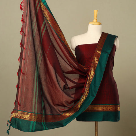 Maroon is a timeless shade that is a symbol of fashion and warmth. Our Dharwad cotton dress materials in this colour are perfect for festive wear or traditional wear.