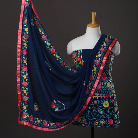 We have many phulkari georgette dress material options in different shades, including bold and muted shades.
