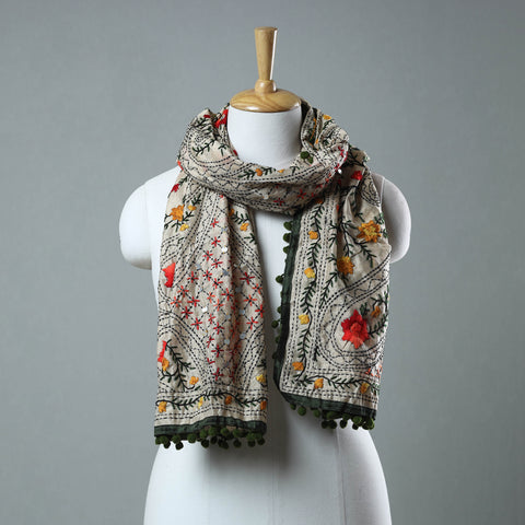 Phulkari artwork hails from the state of Punjab and is a form of embroidery technique traditional to the state. The word ‘phulkari’ literally translates to flower work or floral work and that is visible in the patterns of embroidery of phulkari work. However, apart from flowers and floral patterns, it also encompasses geometrical designs and motifs created from imagination or by taking inspiration from one’s surroundings. At iTokri, you will find some of the most traditional phulkari designs with heavy embroidery patterns. Our Phulkari dupatta designs encase traditional patterns that are embroidered by hand. We can assure you that you will find some of the best phulkari embroidered stoles online at our website promising the best quality and authenticity of this unique folk embroidery coming from Punjab. Also, check out our cotton stole for ladies in different folk arts, embroideries and prints that will surely make you want to add these pieces to your wardrobe.