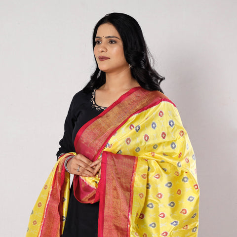 Among the wide array of dupattas available,Pochampally Ikat Dupattas stand out for their unique weaving technique and cultural significance. Pochampally dupattas are handwoven using theIkat technique, a resist-dyeing process that predates industrial textile production and requires meticulous precision. Each Pochampally Ikat dupatta is distinguished by its geometric patterns, intricate designs, and the bold use of colors, reflecting the heritage of Telangana's weaving communities.