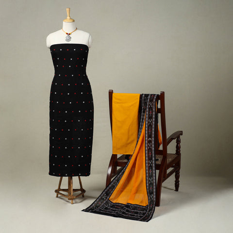 ● 3pc Sambalpuri Ikat Weave Handloom Cotton Suit Material Set in Yellow And Black