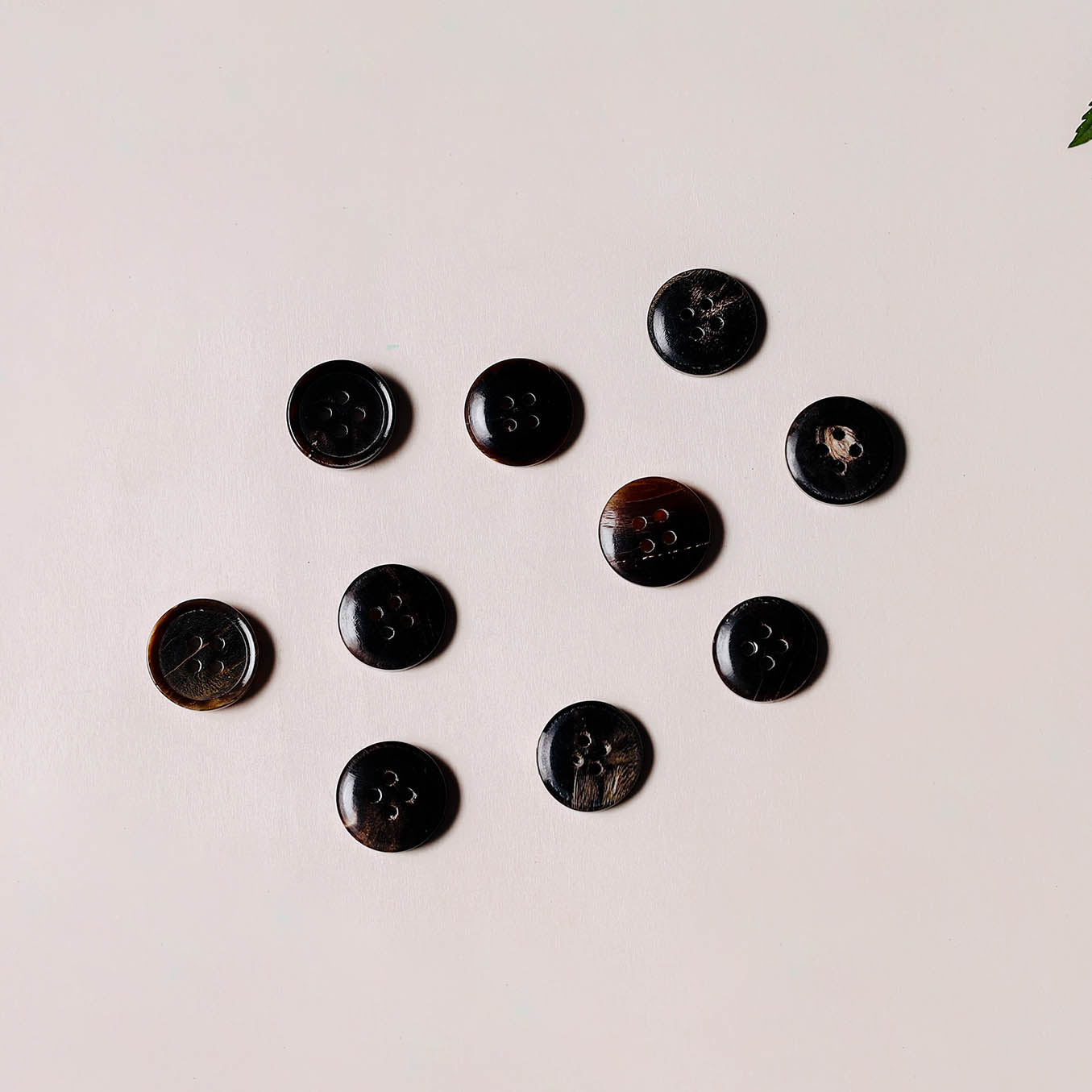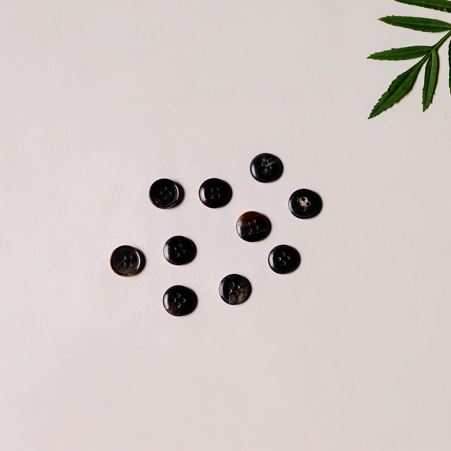 Hand carved button set is made from buffalo horn by artisans in Rajasthan. The buttons are light in weight, strong and suitable for regular use. They work well on shirts, kurtas, jackets and ethnic wear. With a simple and earthy look, these buttons easily match both traditional and modern clothing styles.
