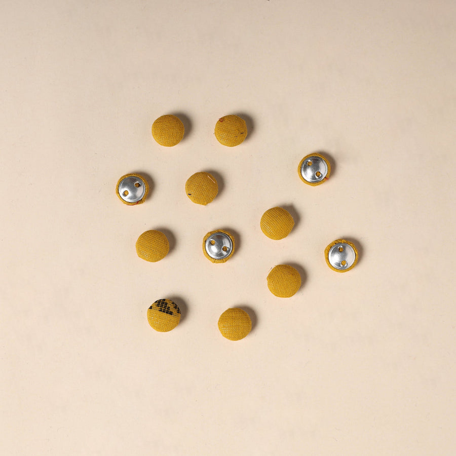 Enhance your creative projects with this set of 12 handmade fabric buttons by Buttonbaaz. Crafted from cotton fabric and fitted with rust free aluminum bases, these buttons are perfect for sewing, knitting, crochet, scrapbooking, and other DIY crafts, adding a handcrafted charm to every design.