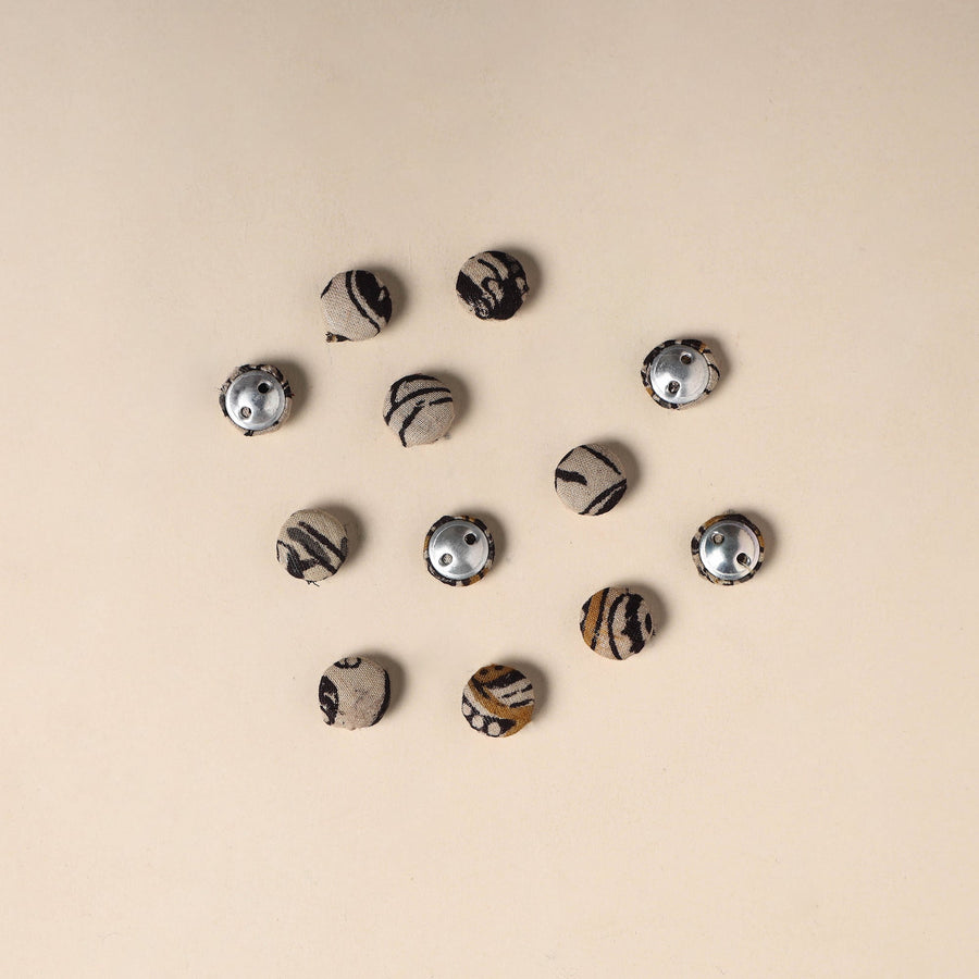 Enhance your creative projects with this set of 12 handmade fabric buttons by Buttonbaaz. Crafted from cotton fabric and fitted with rust free aluminum bases, these buttons are perfect for sewing, knitting, crochet, scrapbooking, and other DIY crafts, adding a handcrafted charm to every design.
