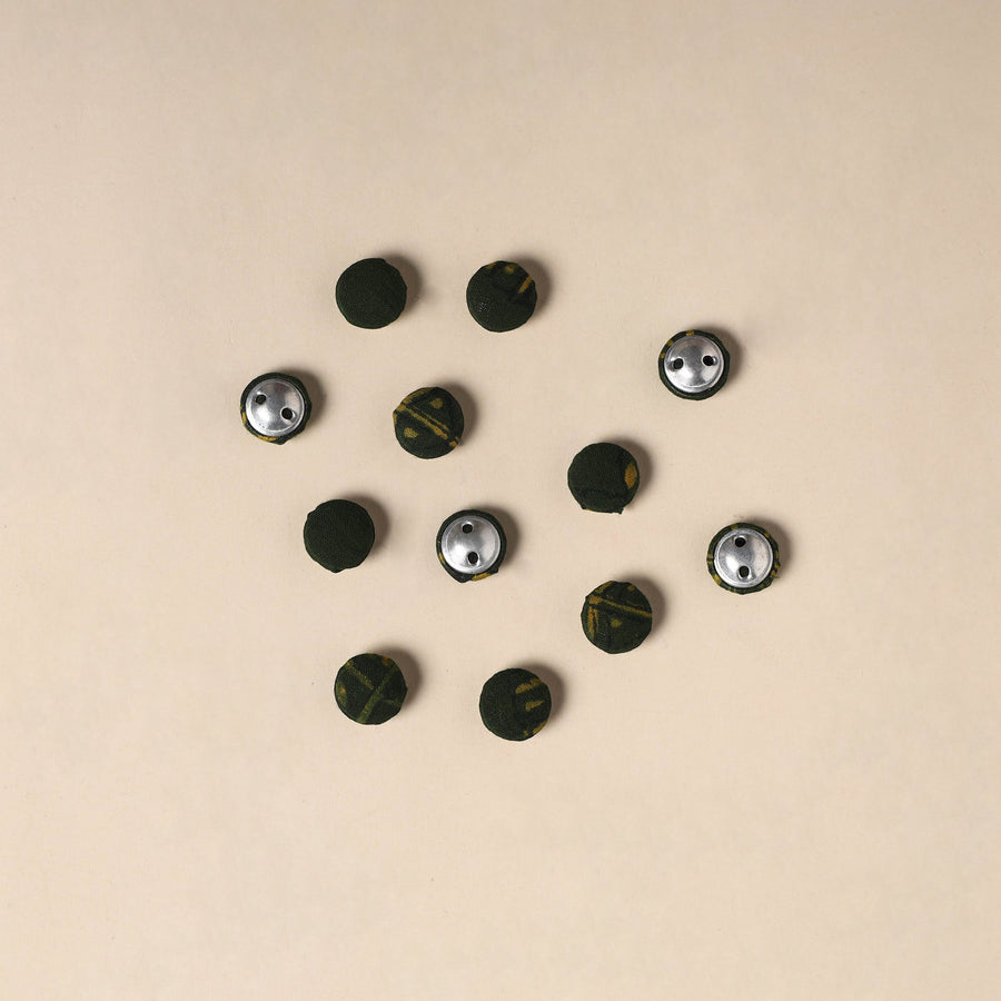 Enhance your creative projects with this set of 12 handmade fabric buttons by Buttonbaaz. Crafted from cotton fabric and fitted with rust free aluminum bases, these buttons are perfect for sewing, knitting, crochet, scrapbooking, and other DIY crafts, adding a handcrafted charm to every design.