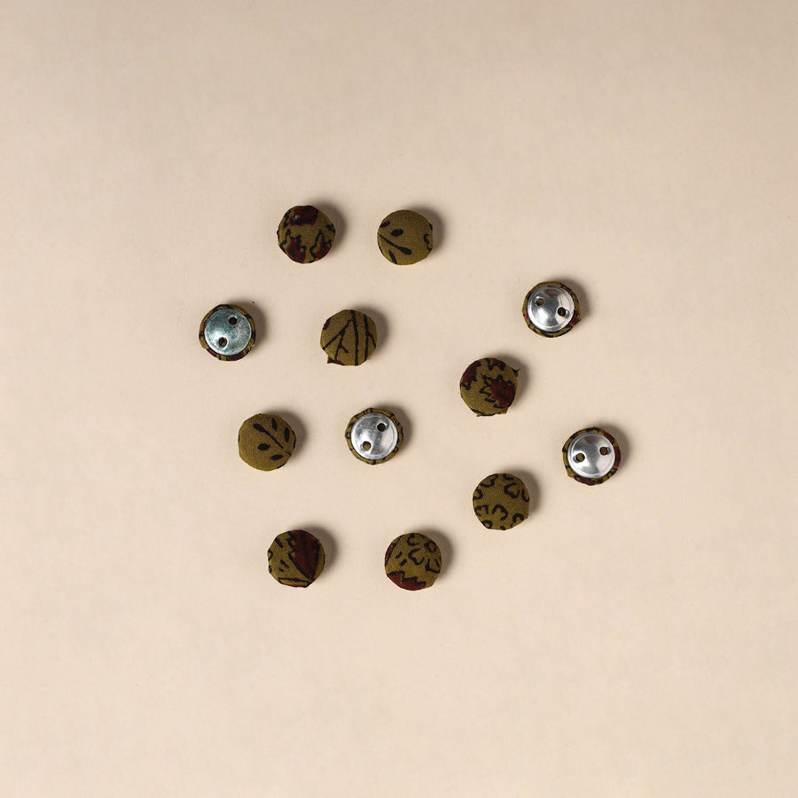 Enhance your creative projects with this set of 12 handmade fabric buttons by Buttonbaaz. Crafted from cotton fabric and fitted with rust free aluminum bases, these buttons are perfect for sewing, knitting, crochet, scrapbooking, and other DIY crafts, adding a handcrafted charm to every design.