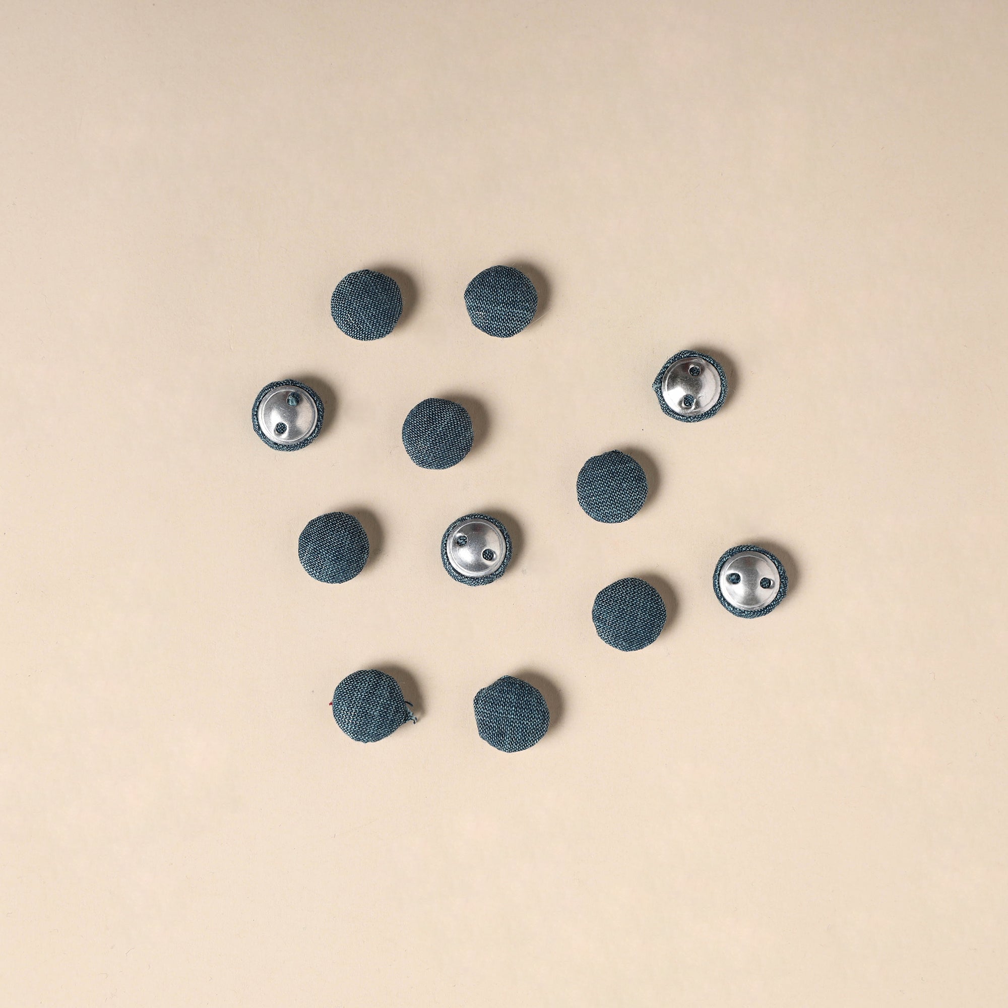 Enhance your creative projects with this set of 12 handmade fabric buttons by Buttonbaaz. Crafted from cotton fabric and fitted with rust free aluminum bases, these buttons are perfect for sewing, knitting, crochet, scrapbooking, and other DIY crafts, adding a handcrafted charm to every design.