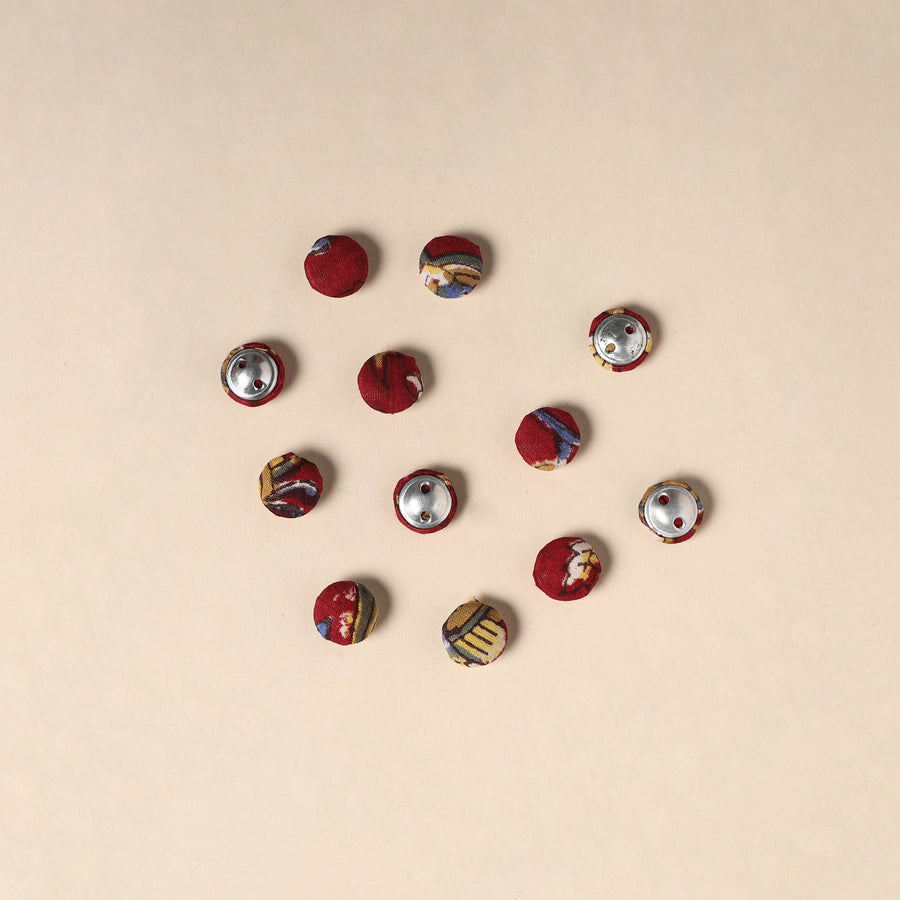 Enhance your creative projects with this set of 12 handmade fabric buttons by Buttonbaaz. Crafted from cotton fabric and fitted with rust free aluminum bases, these buttons are perfect for sewing, knitting, crochet, scrapbooking, and other DIY crafts, adding a handcrafted charm to every design.