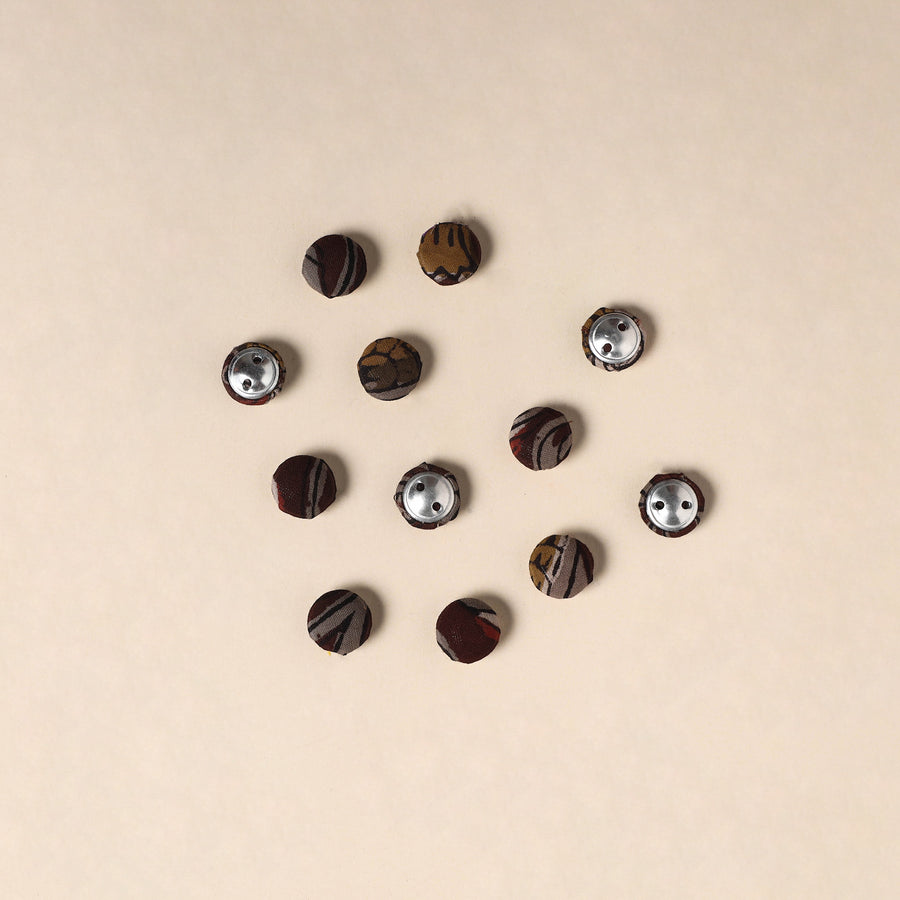 Enhance your creative projects with this set of 12 handmade fabric buttons by Buttonbaaz. Crafted from cotton fabric and fitted with rust free aluminum bases, these buttons are perfect for sewing, knitting, crochet, scrapbooking, and other DIY crafts, adding a handcrafted charm to every design.