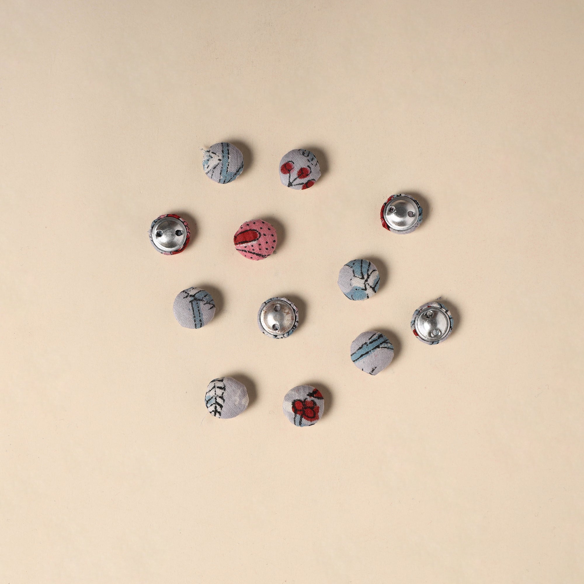 Enhance your creative projects with this set of 12 handmade fabric buttons by Buttonbaaz. Crafted from cotton fabric and fitted with rust free aluminum bases, these buttons are perfect for sewing, knitting, crochet, scrapbooking, and other DIY crafts, adding a handcrafted charm to every design.