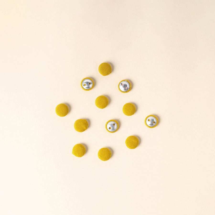 Bring a handmade charm to your creations with this set of 12 yellow fabric buttons. Each button is lovingly crafted by skilled artisans using soft cotton and durable, rust-free aluminum bases. Whether you're passionate about sewing, crochet, embroidery, or scrapbooking, these buttons add a unique, handmade detail to every project. Discover the fusion of traditional craftsmanship and minimalist design.