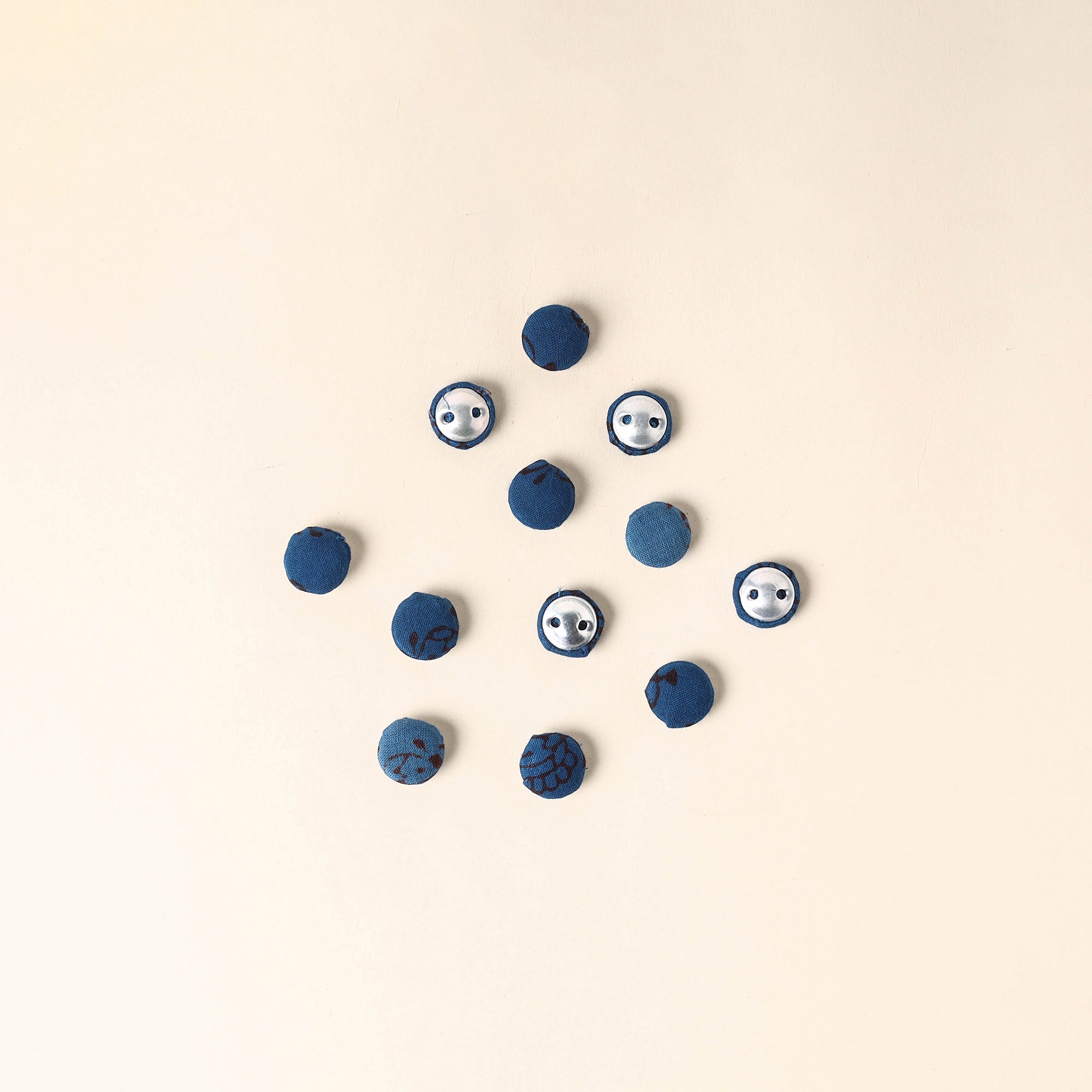 Bring a handmade charm to your creations with this set of 12 blue fabric buttons. Each button is lovingly crafted by skilled artisans using soft cotton and durable, rust-free aluminum bases. Whether you're passionate about sewing, crochet, embroidery, or scrapbooking, these buttons add a unique, handmade detail to every project. Discover the fusion of traditional craftsmanship and minimalist design.