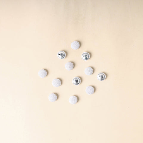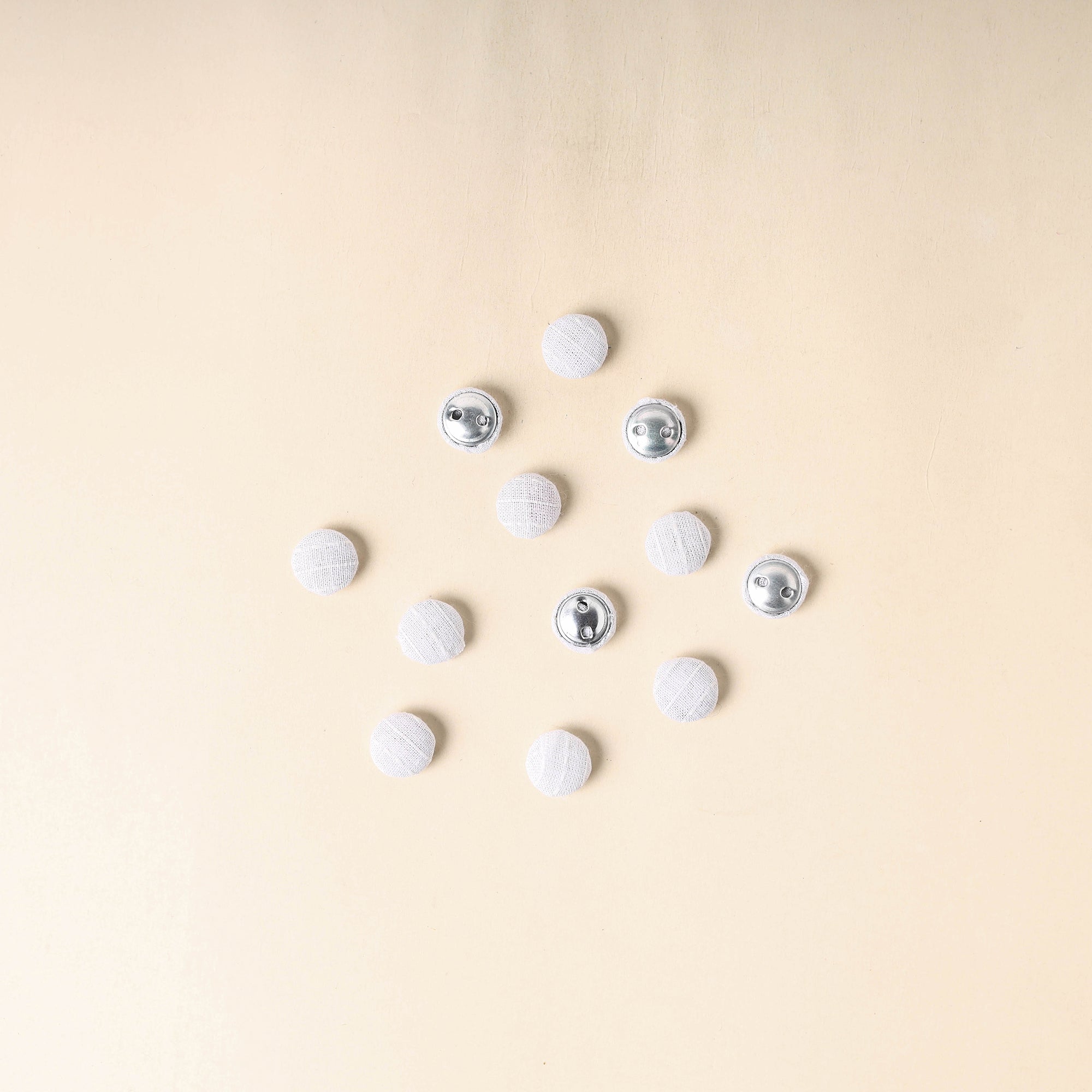 Bring a handmade charm to your creations with this set of 12 white fabric buttons. Each button is lovingly crafted by skilled artisans using soft cotton and durable, rust-free aluminum bases. Whether you're passionate about sewing, crochet, embroidery, or scrapbooking, these buttons add a unique, handmade detail to every project. Discover the fusion of traditional craftsmanship and minimalist design.