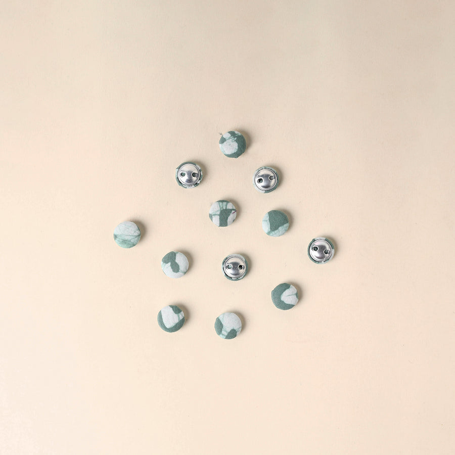 Bring a handmade charm to your creations with this set of 12 green fabric buttons. Each button is lovingly crafted by skilled artisans using soft cotton and durable, rust-free aluminum bases. Whether you're passionate about sewing, crochet, embroidery, or scrapbooking, these buttons add a unique, handmade detail to every project. Discover the fusion of traditional craftsmanship and minimalist design.