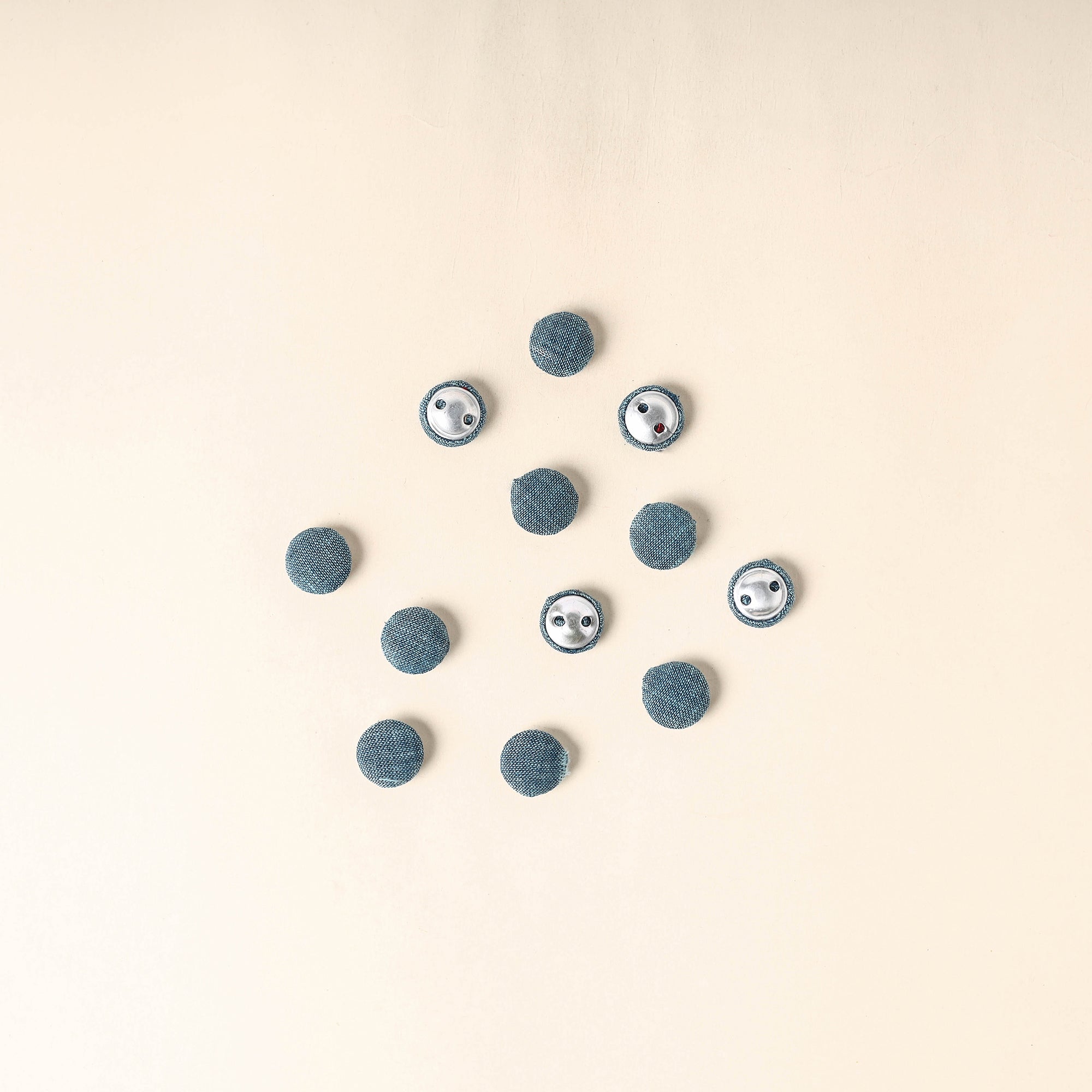 Bring a handmade charm to your creations with this set of 12 blue fabric buttons. Each button is lovingly crafted by skilled artisans using soft cotton and durable, rust-free aluminum bases. Whether you're passionate about sewing, crochet, embroidery, or scrapbooking, these buttons add a unique, handmade detail to every project. Discover the fusion of traditional craftsmanship and minimalist design.