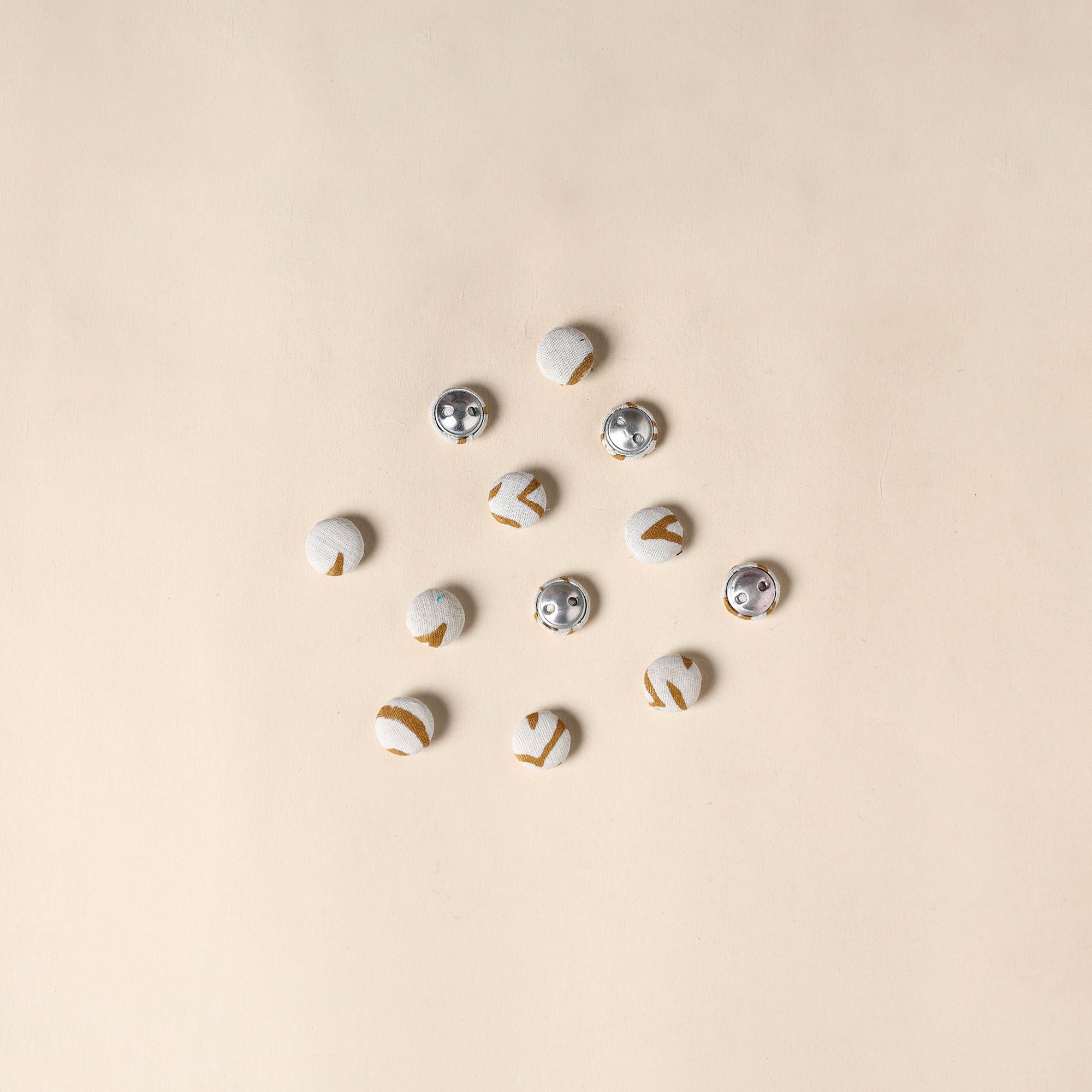Bring a handmade charm to your creations with this set of 12 white fabric buttons. Each button is lovingly crafted by skilled artisans using soft cotton and durable, rust-free aluminum bases. Whether you're passionate about sewing, crochet, embroidery, or scrapbooking, these buttons add a unique, handmade detail to every project. Discover the fusion of traditional craftsmanship and minimalist design.