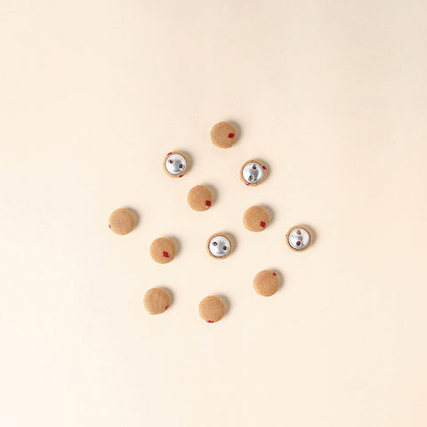 Bring a handmade charm to your creations with this set of 12 brown fabric buttons. Each button is lovingly crafted by skilled artisans using soft cotton and durable, rust-free aluminum bases. Whether you're passionate about sewing, crochet, embroidery, or scrapbooking, these buttons add a unique, handmade detail to every project. Discover the fusion of traditional craftsmanship and minimalist design.