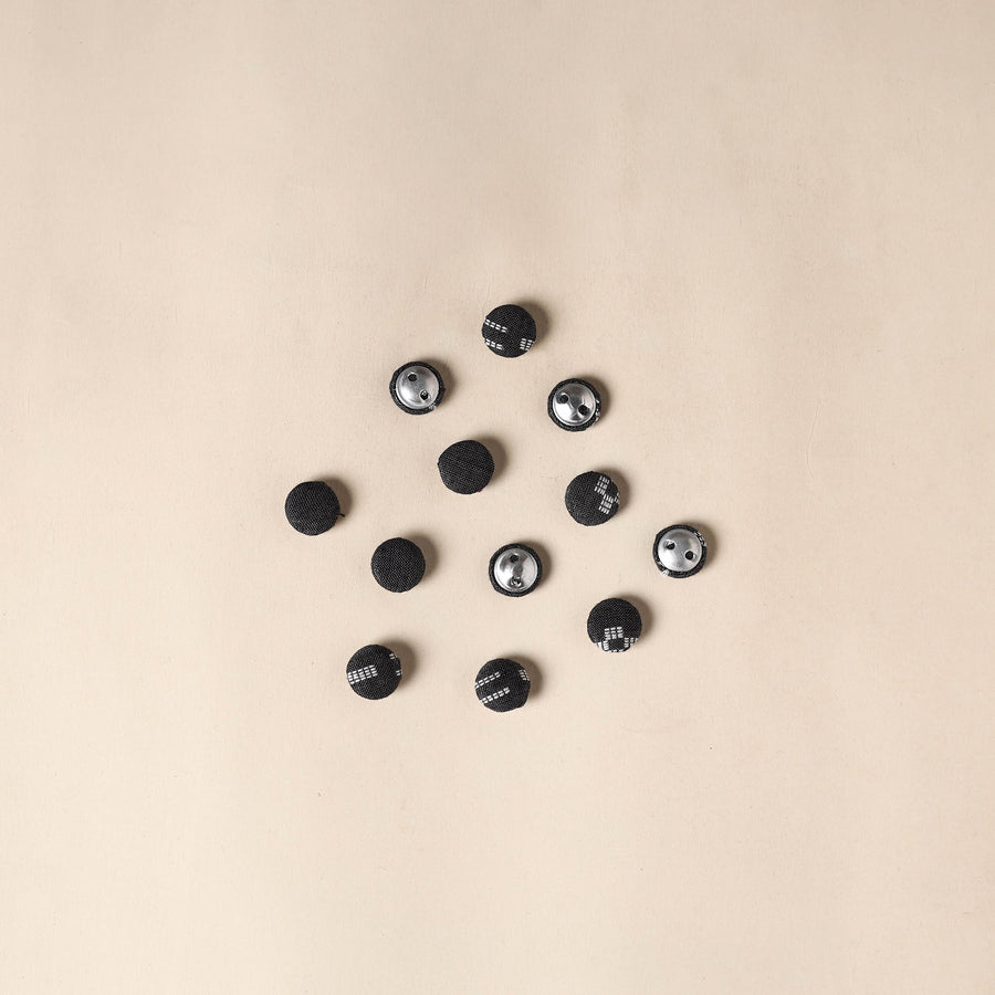 Bring a handmade charm to your creations with this set of 12 black fabric buttons. Each button is lovingly crafted by skilled artisans using soft cotton and durable, rust-free aluminum bases. Whether you're passionate about sewing, crochet, embroidery, or scrapbooking, these buttons add a unique, handmade detail to every project. Discover the fusion of traditional craftsmanship and minimalist design.