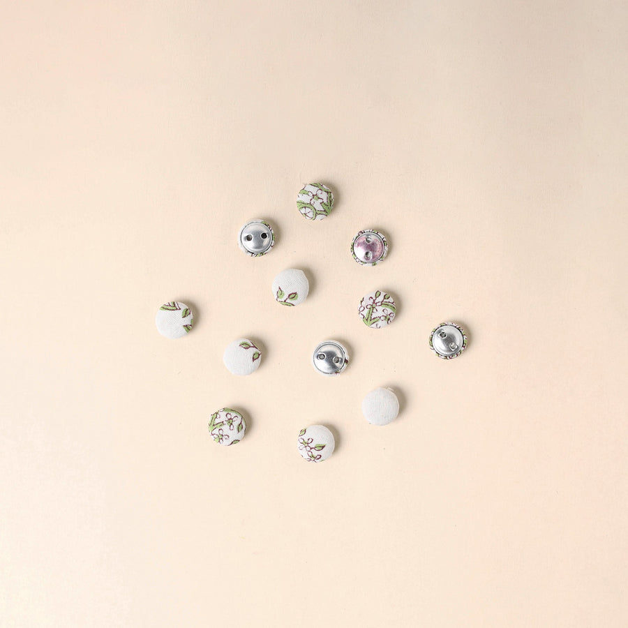 Bring a handmade charm to your creations with this set of 12 white fabric buttons. Each button is lovingly crafted by skilled artisans using soft cotton and durable, rust-free aluminum bases. Whether you're passionate about sewing, crochet, embroidery, or scrapbooking, these buttons add a unique, handmade detail to every project. Discover the fusion of traditional craftsmanship and minimalist design.