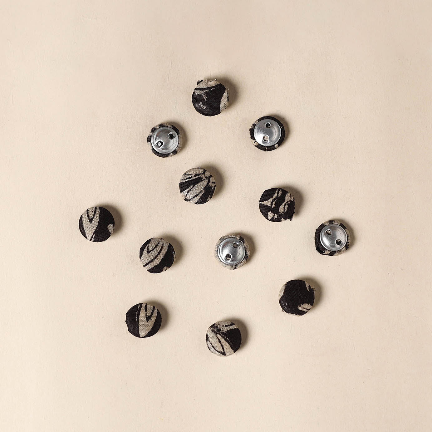 Bring a handmade charm to your creations with this set of 12 multicolor fabric buttons. Each button is lovingly crafted by skilled artisans using soft cotton and durable, rust-free aluminum bases. Whether you're passionate about sewing, crochet, embroidery, or scrapbooking, these buttons add a unique, handmade detail to every project. Discover the fusion of traditional craftsmanship and minimalist design.