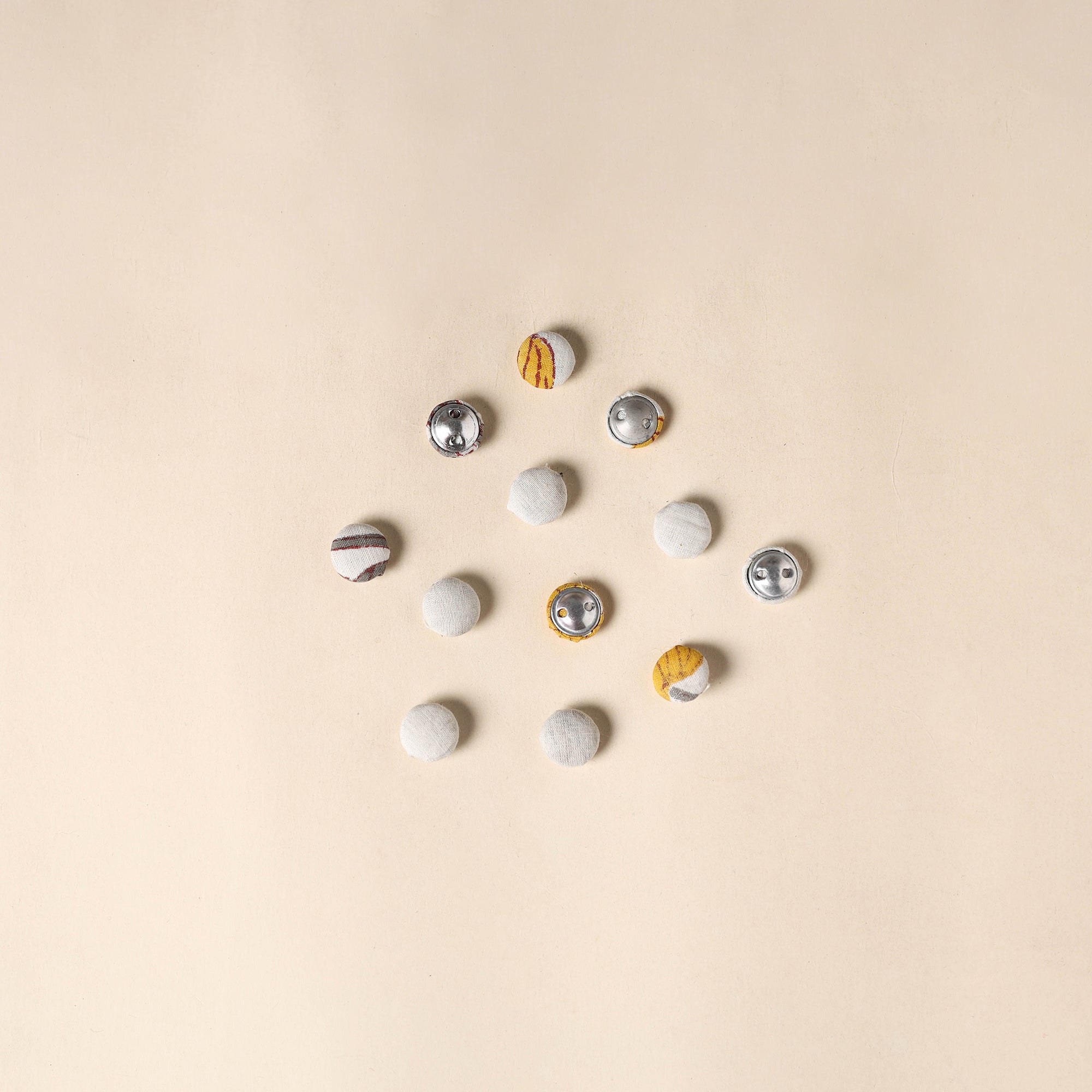 Bring a handmade charm to your creations with this set of 12 white fabric buttons. Each button is lovingly crafted by skilled artisans using soft cotton and durable, rust-free aluminum bases. Whether you're passionate about sewing, crochet, embroidery, or scrapbooking, these buttons add a unique, handmade detail to every project. Discover the fusion of traditional craftsmanship and minimalist design.