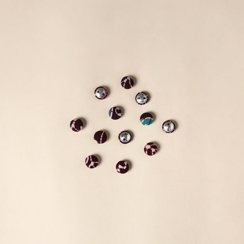 Bring a handmade charm to your creations with this set of 12 maroon fabric buttons. Each button is lovingly crafted by skilled artisans using soft cotton and durable, rust-free aluminum bases. Whether you're passionate about sewing, crochet, embroidery, or scrapbooking, these buttons add a unique, handmade detail to every project. Discover the fusion of traditional craftsmanship and minimalist design.