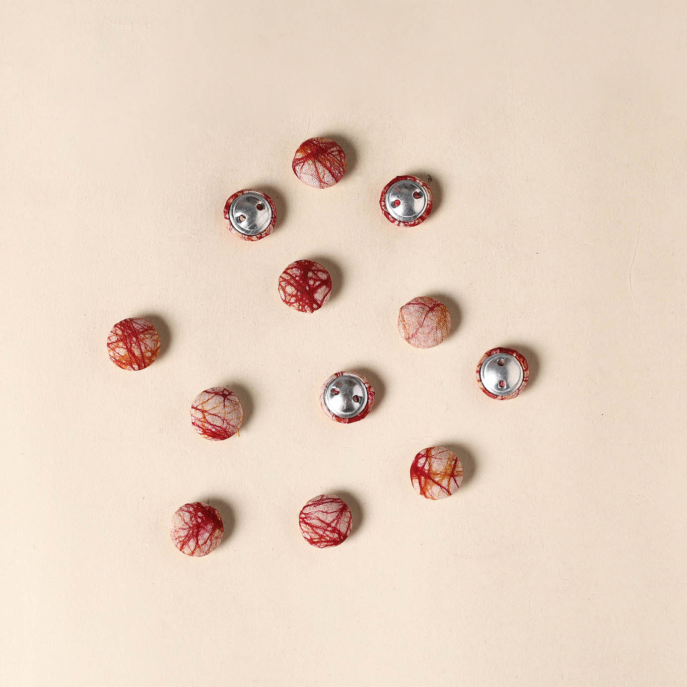 Bring a handmade charm to your creations with this set of 12 red fabric buttons. Each button is lovingly crafted by skilled artisans using soft cotton and durable, rust-free aluminum bases. Whether you're passionate about sewing, crochet, embroidery, or scrapbooking, these buttons add a unique, handmade detail to every project. Discover the fusion of traditional craftsmanship and minimalist design.