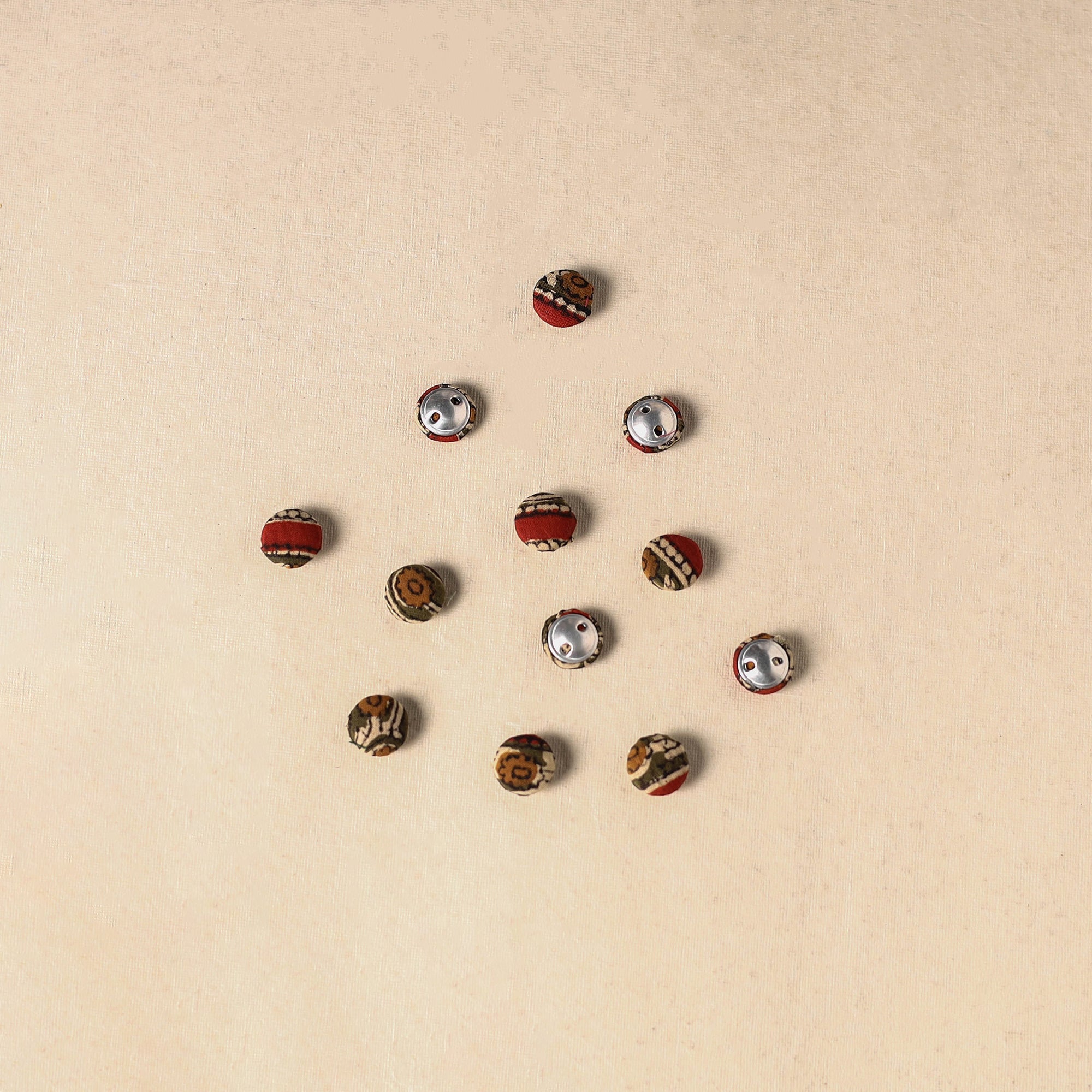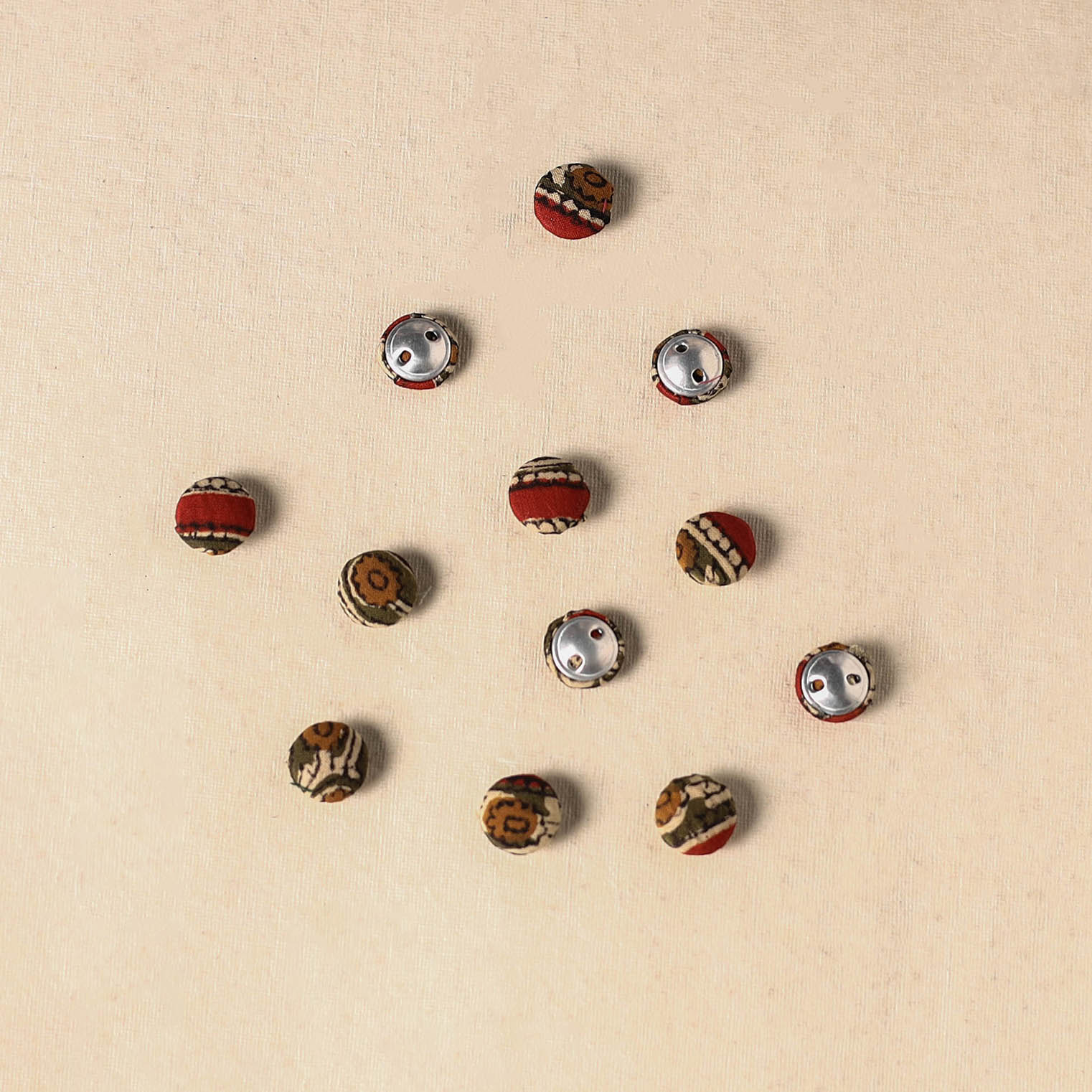 Add a handmade charm to your creations with these fabric button (set of 12). Each button is crafted by artisans using cotton fabric and durable, rust-free aluminium bases. Whether you’re passionate about sewing, crochet, embroidery or scrapbooking, these buttons add a unique touch to every project.
