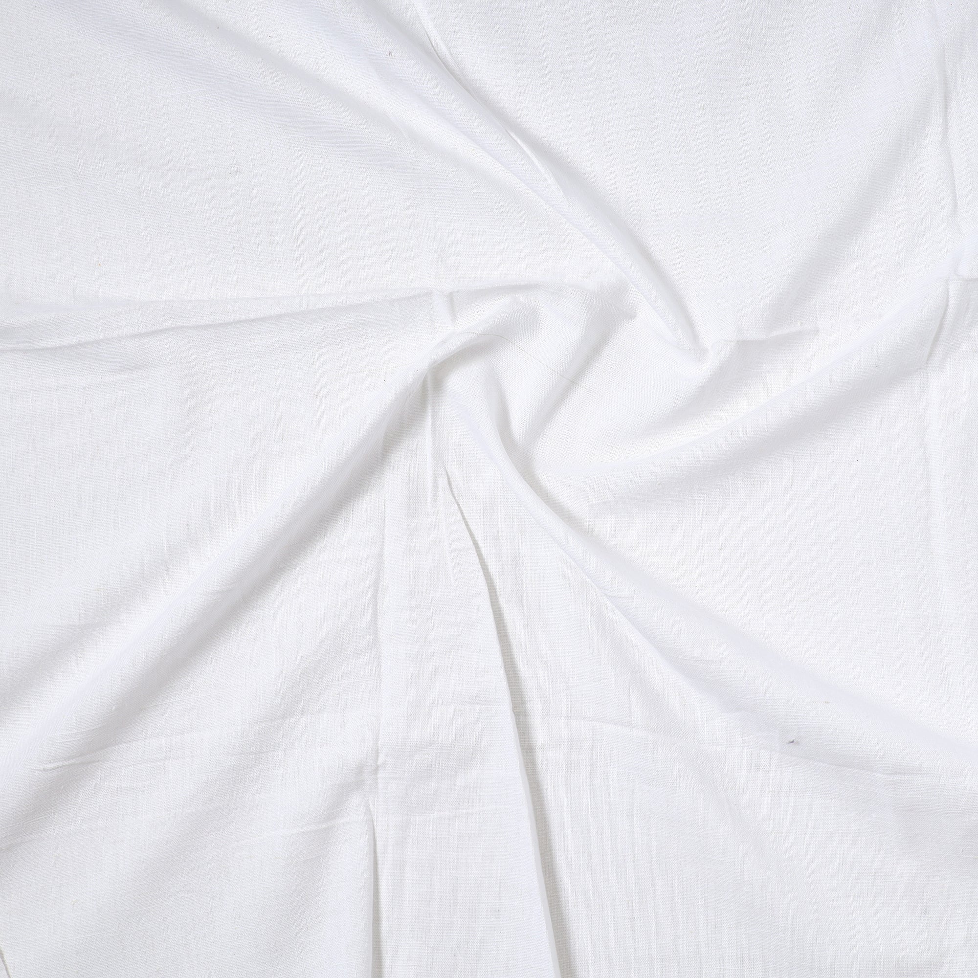 Fine-quality white pure handloom cotton precut fabric from Jhiri, Rajasthan. Aha Vastra, a renowned handloom cooperative, is committed to fostering positive social change through its community-led initiatives in Jhiri village. Perfect for crafting elegant blouses, bags, decorative items, etc., this exquisite textile symbolizes timeless sophistication, adding a touch of elegance to any wardrobe.