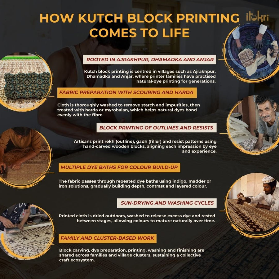 Kutch Ji Chhap is an in-house curated brand by itokri that presents both textile and non-textile products to your service. Here, we celebrate the crafts, heritage, and cultural ecology of the Kachchh region of Gujarat. We curate the best products of master craftsmanship from artisans working with various craft processes of the region including woven & printed textiles, leather crafts, lacquered wooden crafts, metal crafts, embroideries, and more.