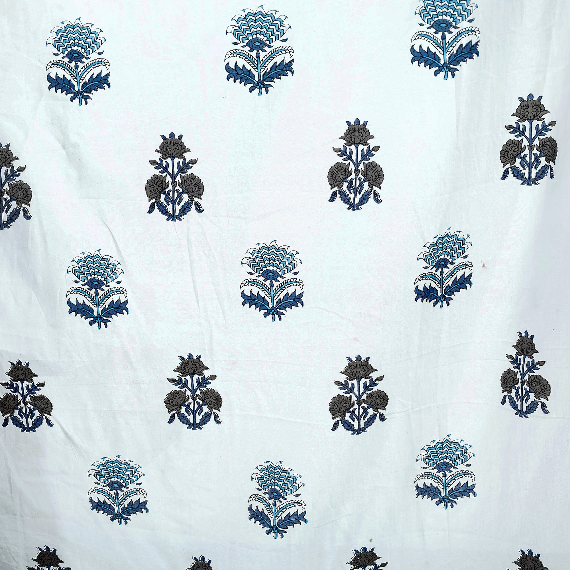 Blue - Cotton Hand Block Sanganeri Print Fabric 07