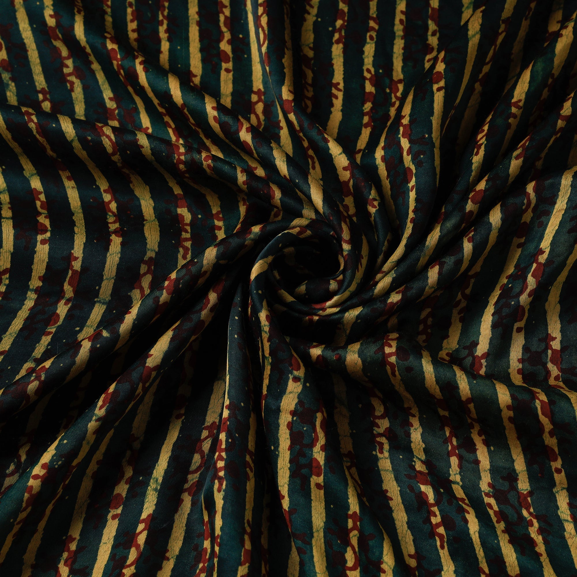 Fine quality vanaspati hand block print natural dyed modal silk fabric from Karnataka. Modal silk is a soft, shiny and highly lustrous fabric, achieved through interlacing modal fibers and silk yarns. it has opulence of silk and the comfort of cotton modal is a fine and soft textured weave.