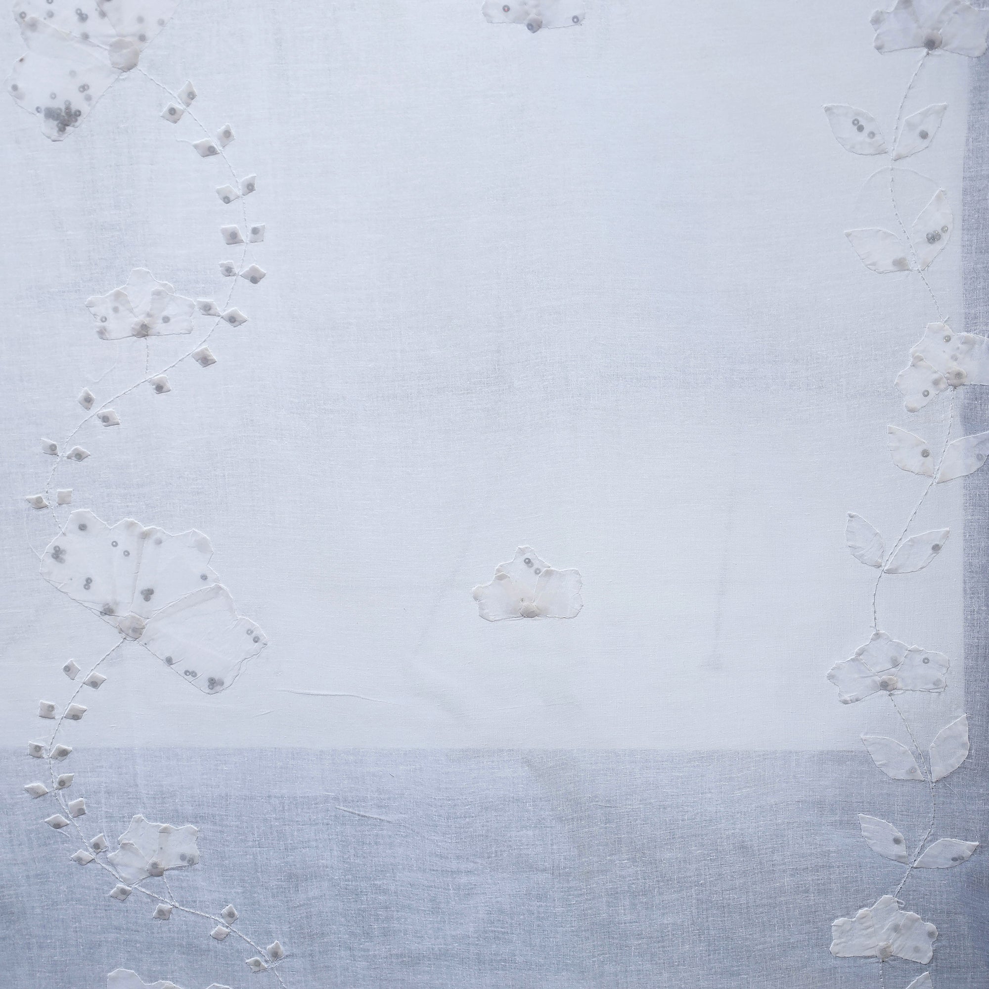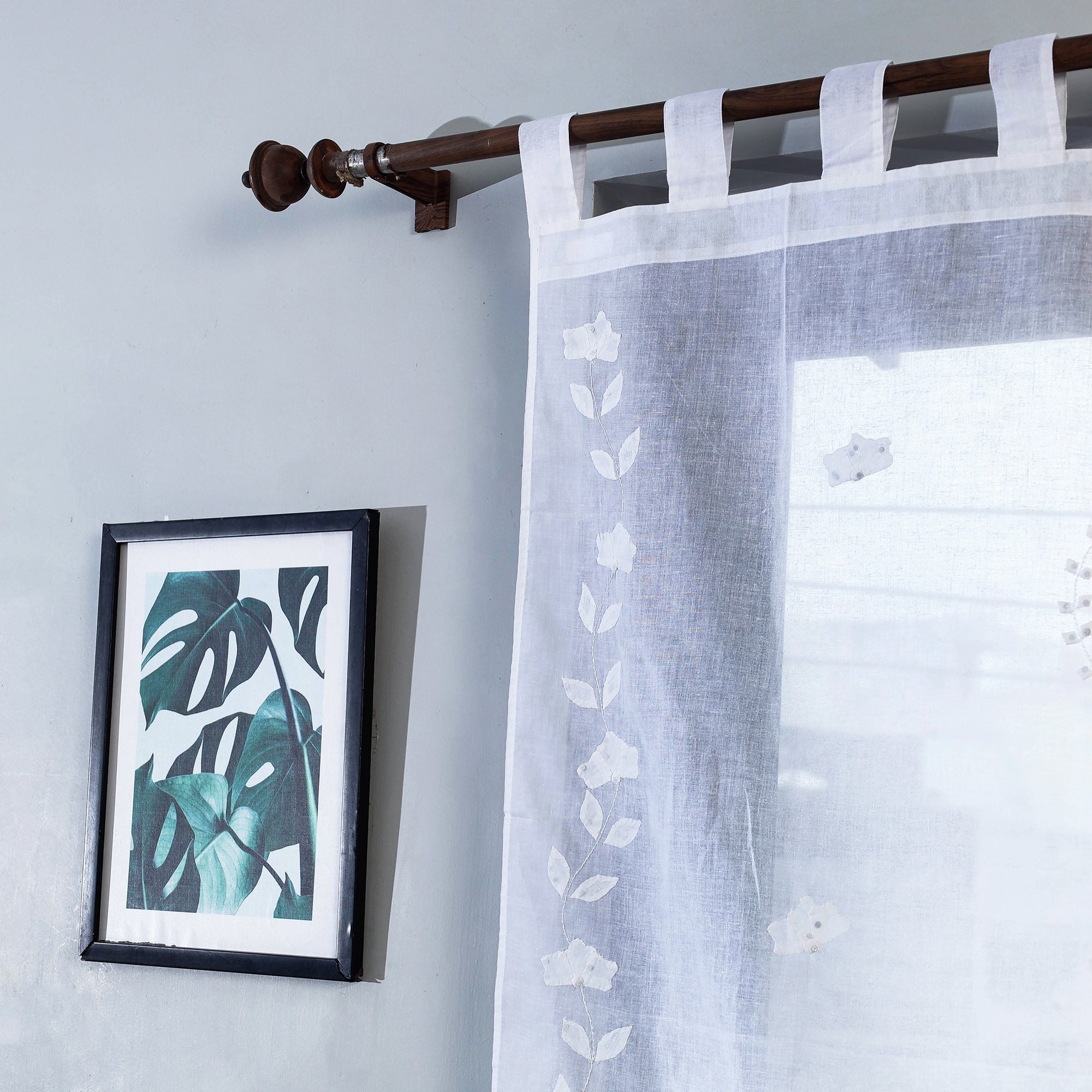 Fine quality white hand-stitched applique patti kaam cotton door curtain with loop from Rampur. It's unique style applique work does magic in light and shade with beautiful stories and patterns.