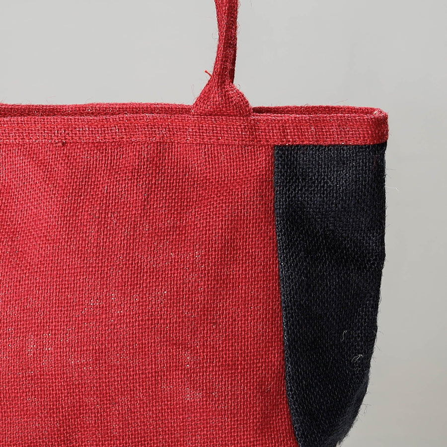 Red handcrafted multipurpose jute hand bag made of jute by Santosh Kumar from Nainital, Uttarakhand.It has laminated layer lining inside for extra strength & water resistance and has one zipper pocket inside.