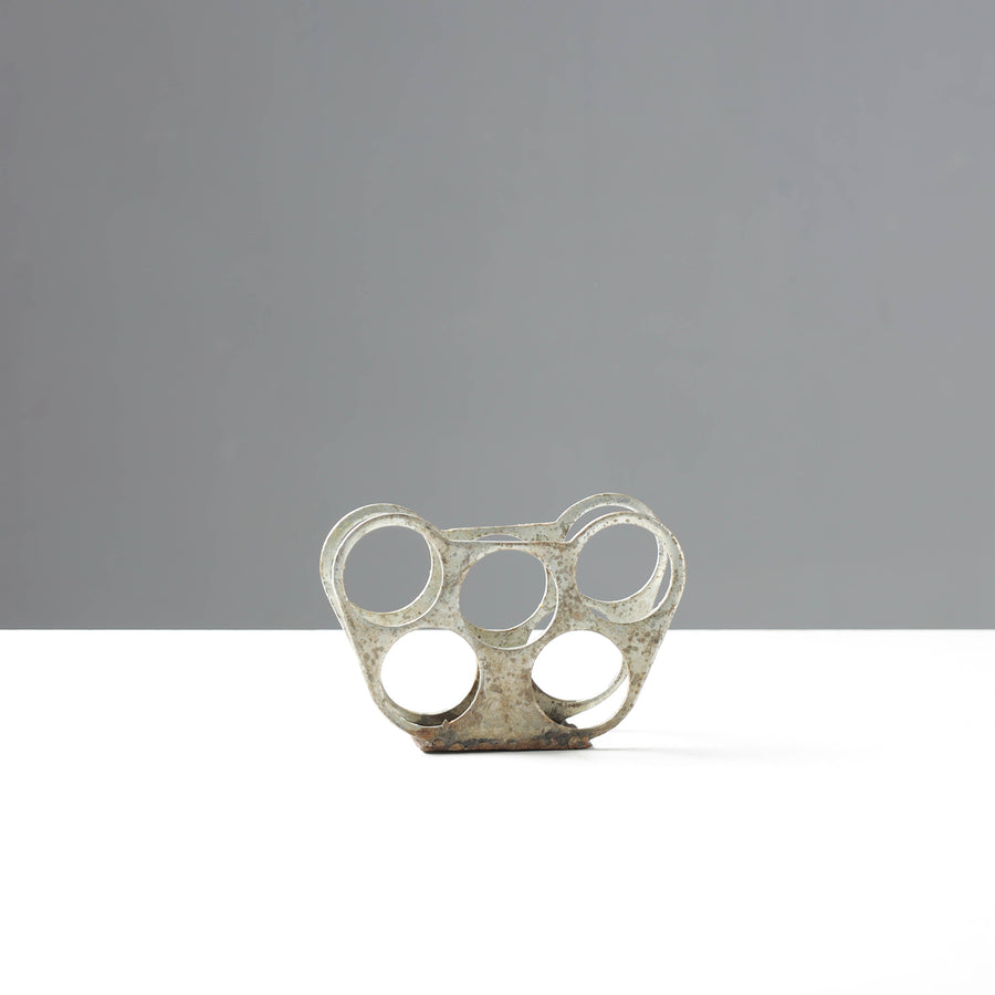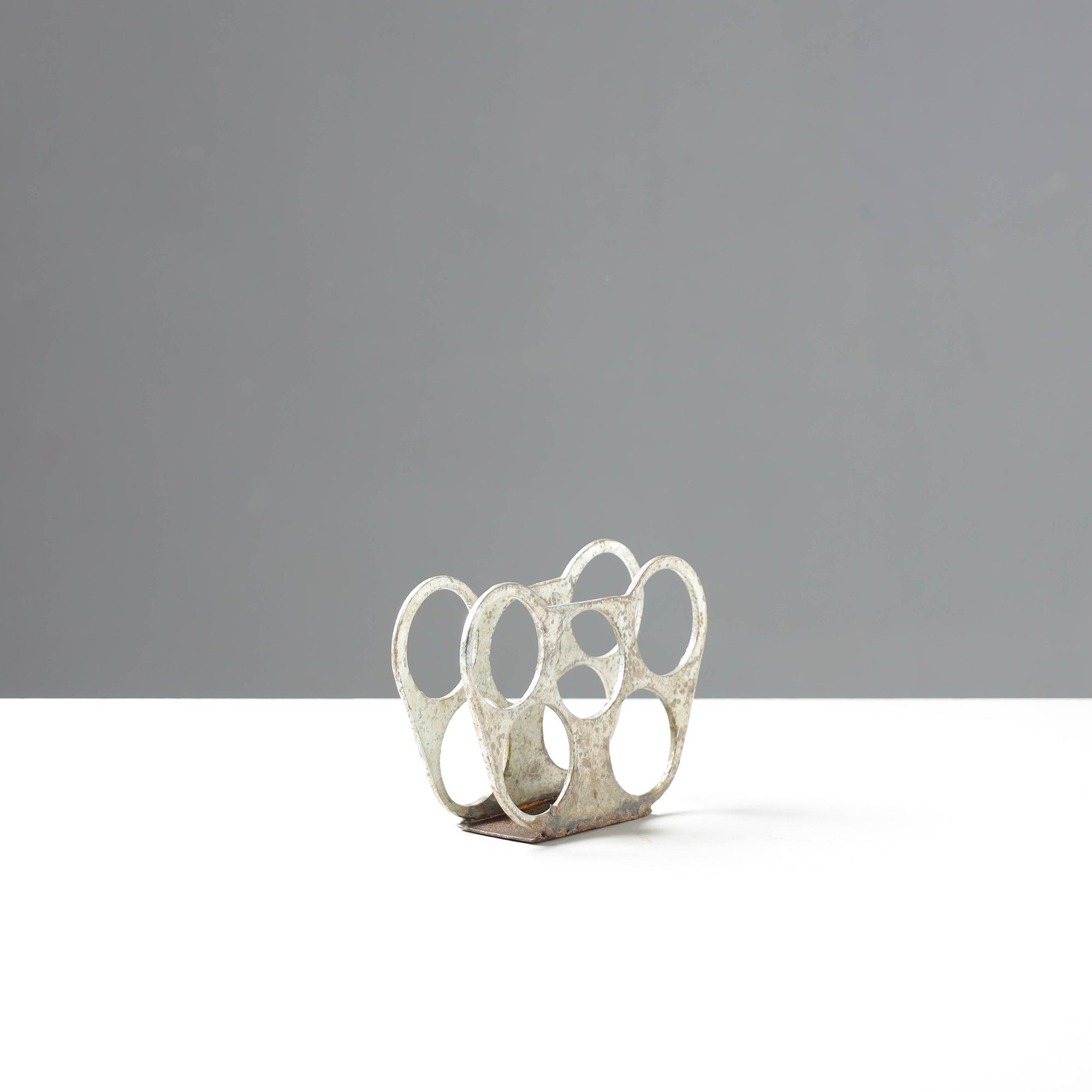 This handmade recycled metal grey sculpture/napkin holder is made by designing, collecting scraps, welding, colouring, and doing the final polish by Debabrata Rui Das from West Bengal.