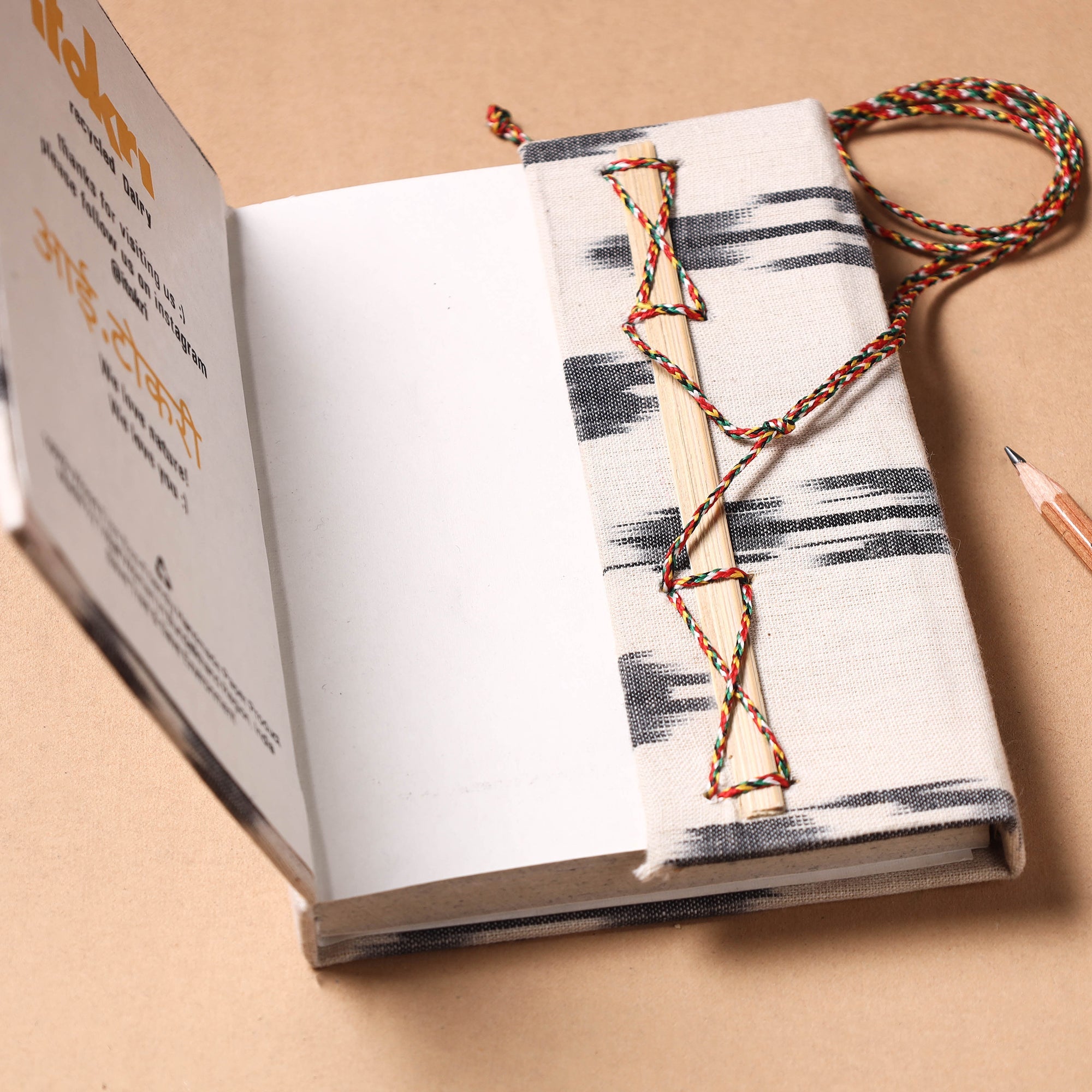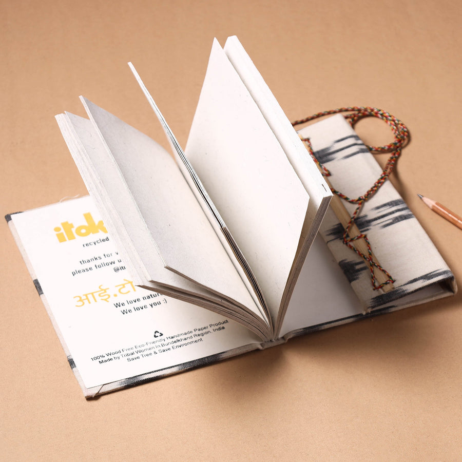 Material Fabric embellished hard bound cover thread lock notebook with handmade papers. This paper is made of cotton, paper and other natural fibre waste recycled in an eco-friendly manner without the use of chemicals. Hand made by master artisans who maintain careful personal attention to detail. They are highly skilled in a variety of bookbinding and handmade stationery manufacturing techniques.