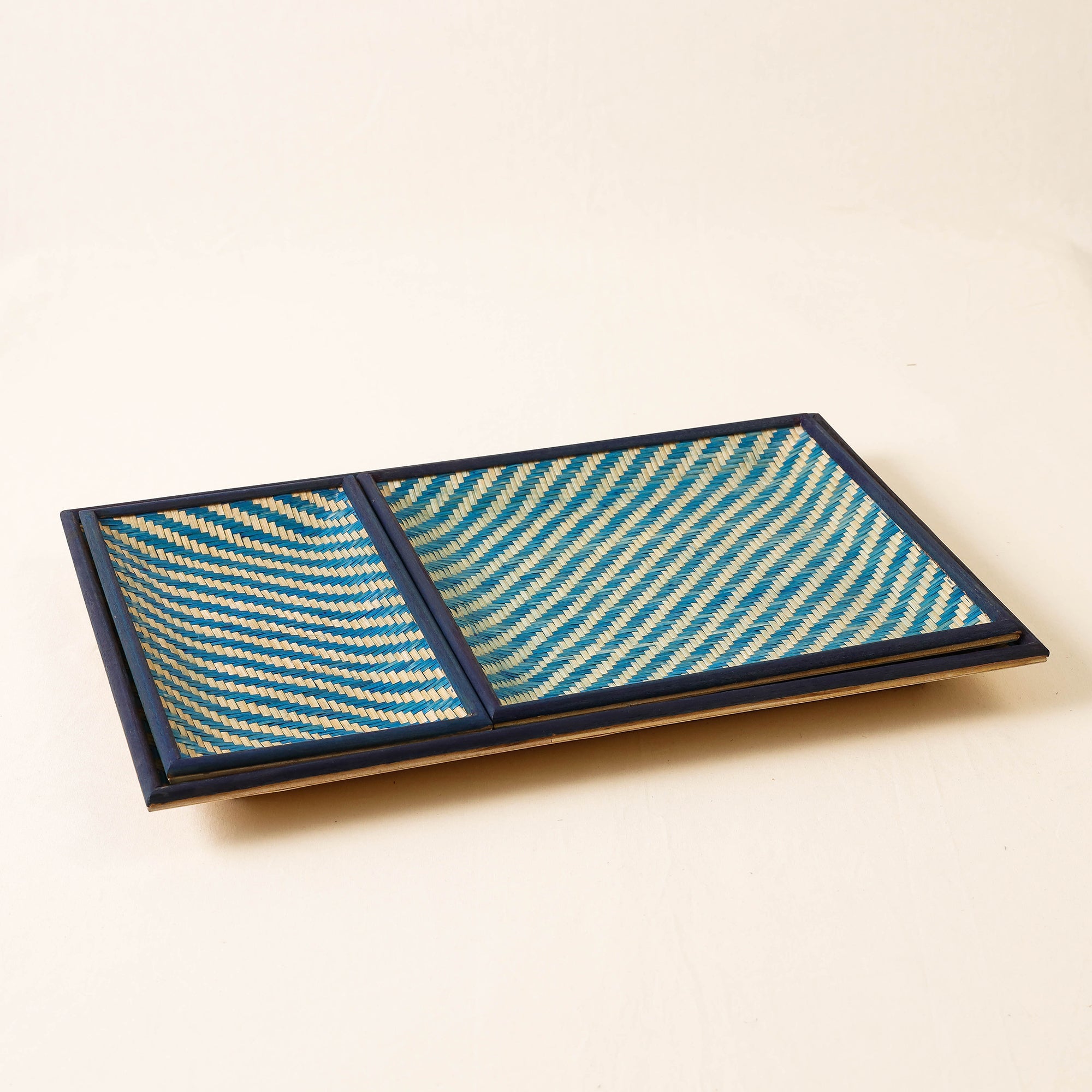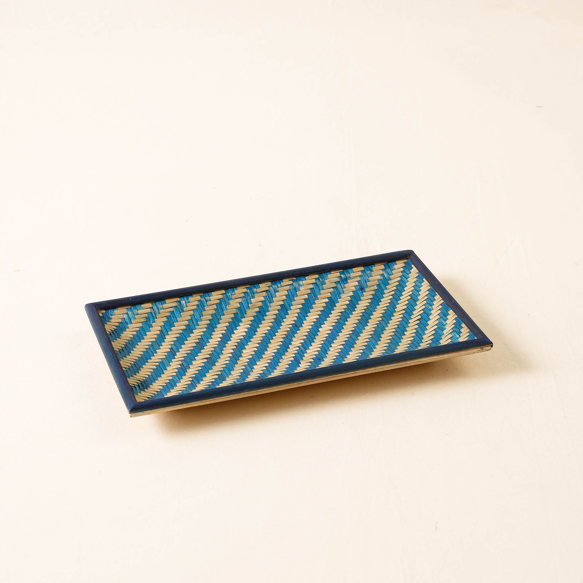 Food safe, non-plastic serving green tray / serving tray in unique stylish modern design. Ideal server for your cup of tea/coffee & ideal for serving 4 cups. This trendy and unique Serving tray is made by cutting Bamboo – the fastest growing Timber/grass and splitting the same into slivers by hand. These are dip dyed in earthen pots boiling them for hours till these completely take the lead free azo free colour. well-engineered by human hands & completely bio degradable. This is handwoven by rural women & youth of west bengal using the indigenous locally available bamboo (the strongest material known in organic world) using traditional methods & this helps them sustain economically.