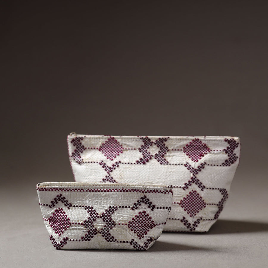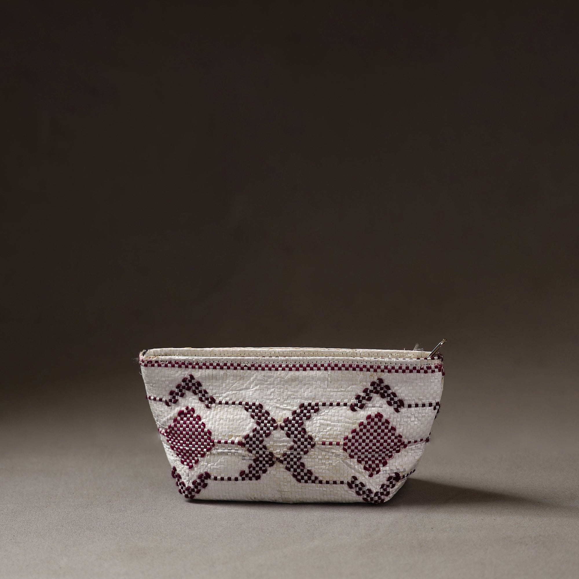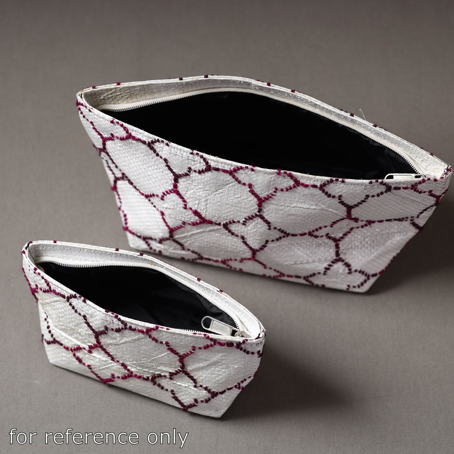Handcrafted multipurpose pouch made from Taat (upcycled plastic) with intricate wool thread embroidery made by rural artisans of Hardoi district, Uttar Pradesh. It has ample space to keep most of your essentials.