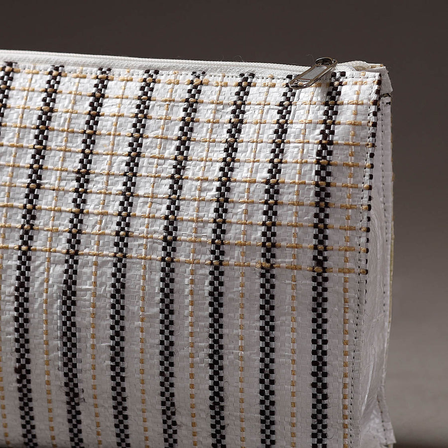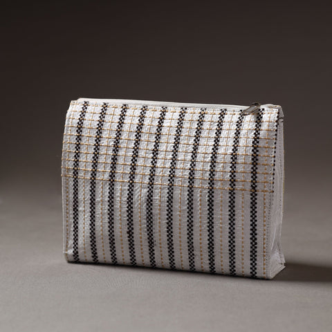Handcrafted multipurpose/travel pouch made from Taat (upcycled plastic) with intricate wool thread embroidery made by rural artisans of Hardoi district, Uttar Pradesh. It has one zipper pocket inside. It has ample space to keep most of your essentials.
