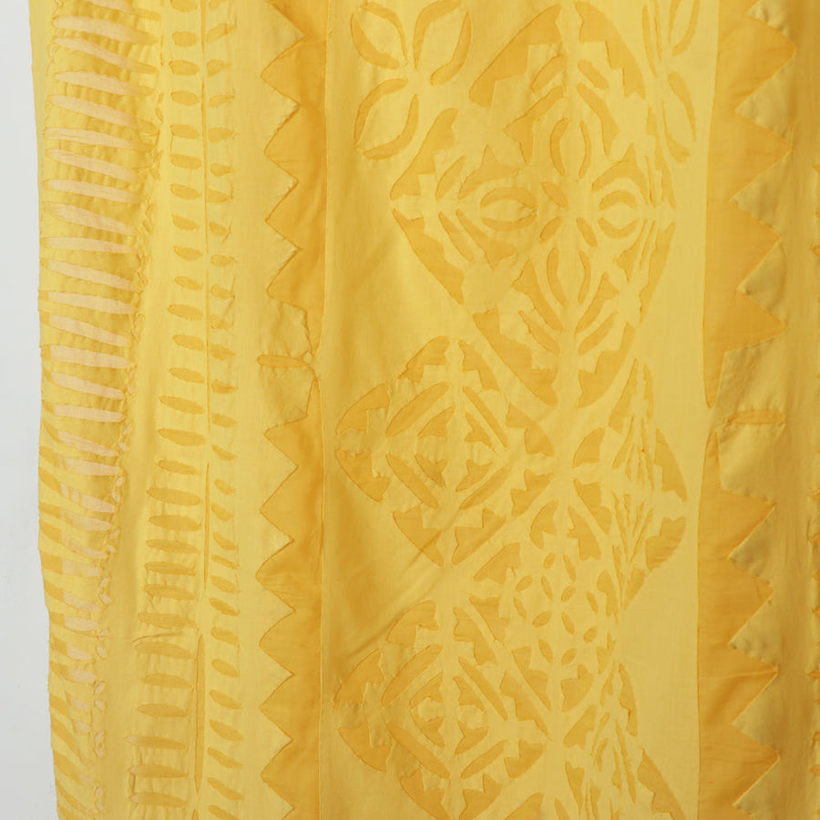 Fine quality yellow hand-stitched traditional applique cutwork door curtain made from organdy cotton fabric. Its unique style appliqué work does magic in light and shade with beautiful stories and patterns.