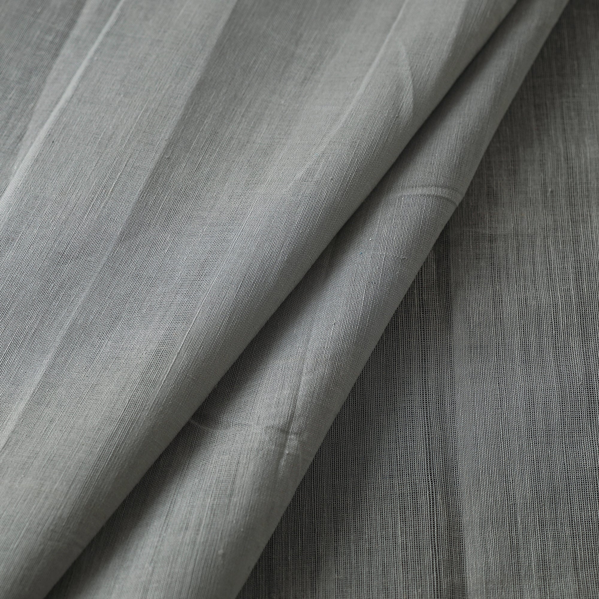 Grey Mangalgiri godavari pure handloom cotton fabric from Andhra Pradesh. The handloom experience (soft, comfortable and durable) is due to the human handling of the yarn in the weaving process. As a result, yarn and the fabric are much less stressed and damaged. Hand woven cotton is known for its breathability as compared to mill made cotton. This implies that it allows more air penetration making it cooler, softer and more absorbent. It keeps you cooler in summers and warm in winters.