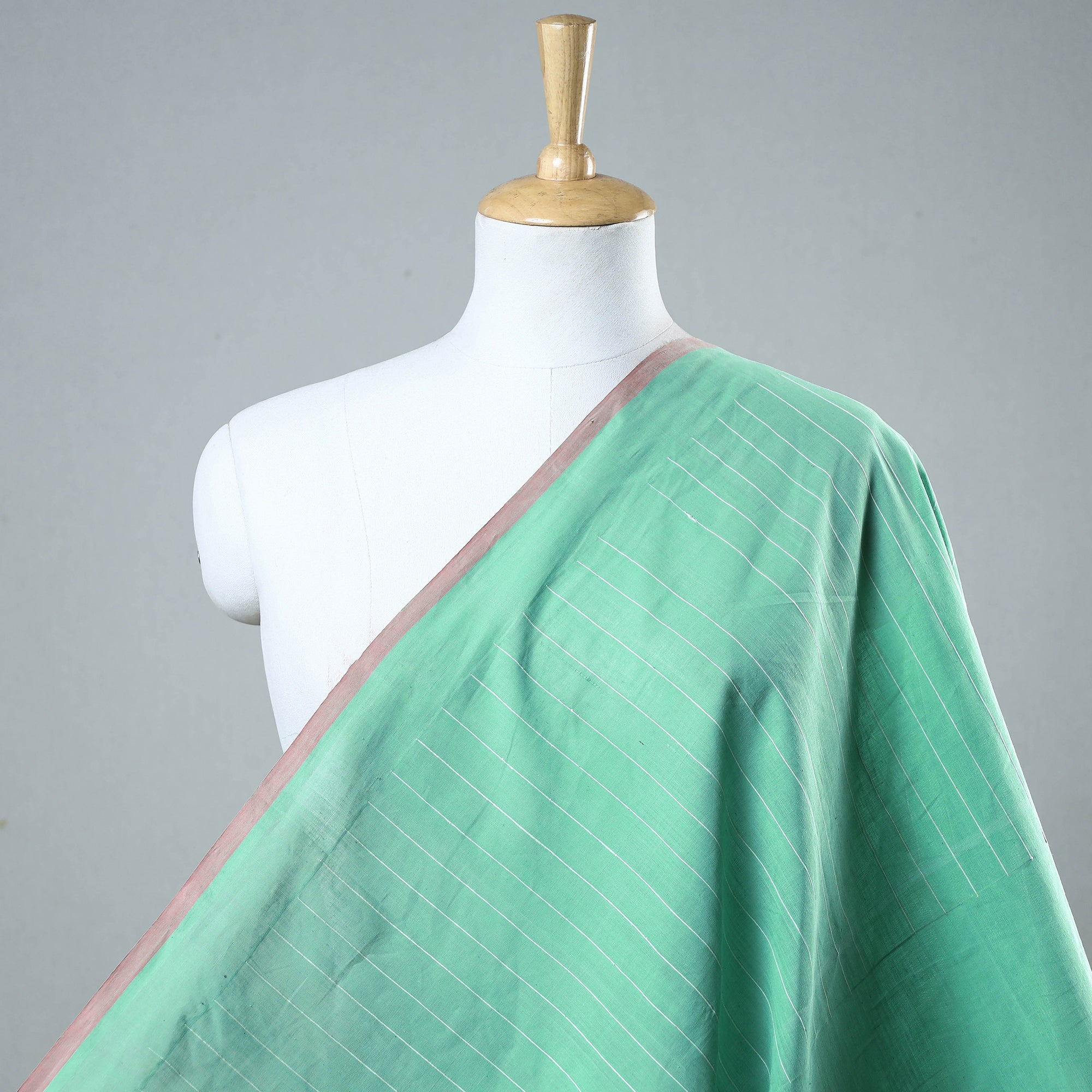Mangalgiri godavari green pure handloom cotton fabric from Andhra Pradesh. The handloom experience (soft, comfortable and durable) is due to the human handling of the yarn in the weaving process. As a result, yarn and the fabric are much less stressed and damaged. Hand woven cotton is known for its breathability as compared to mill made cotton. This implies that it allows more air penetration making it cooler, softer and more absorbent. It keeps you cooler in summers and warm in winters.