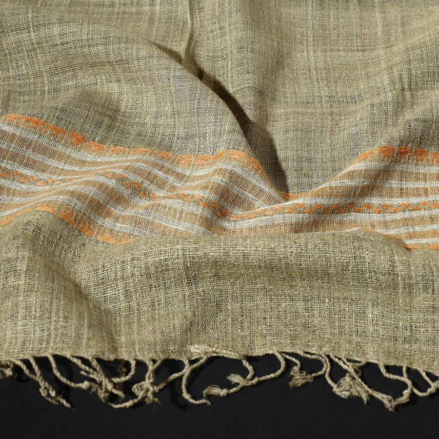 Fine quality traditional handspun handloom eri natural dyed stole. Eri silk is a staple fiber, unlike other silks, which are continuous filament. The texture of the fabric is coarse, fine, and dense. It is very strong, durable, and elastic. Eri silk is darker and heavier than other silks and blends well with wools and cotton. Due to its thermal properties it is warm in winter and cool in summer.