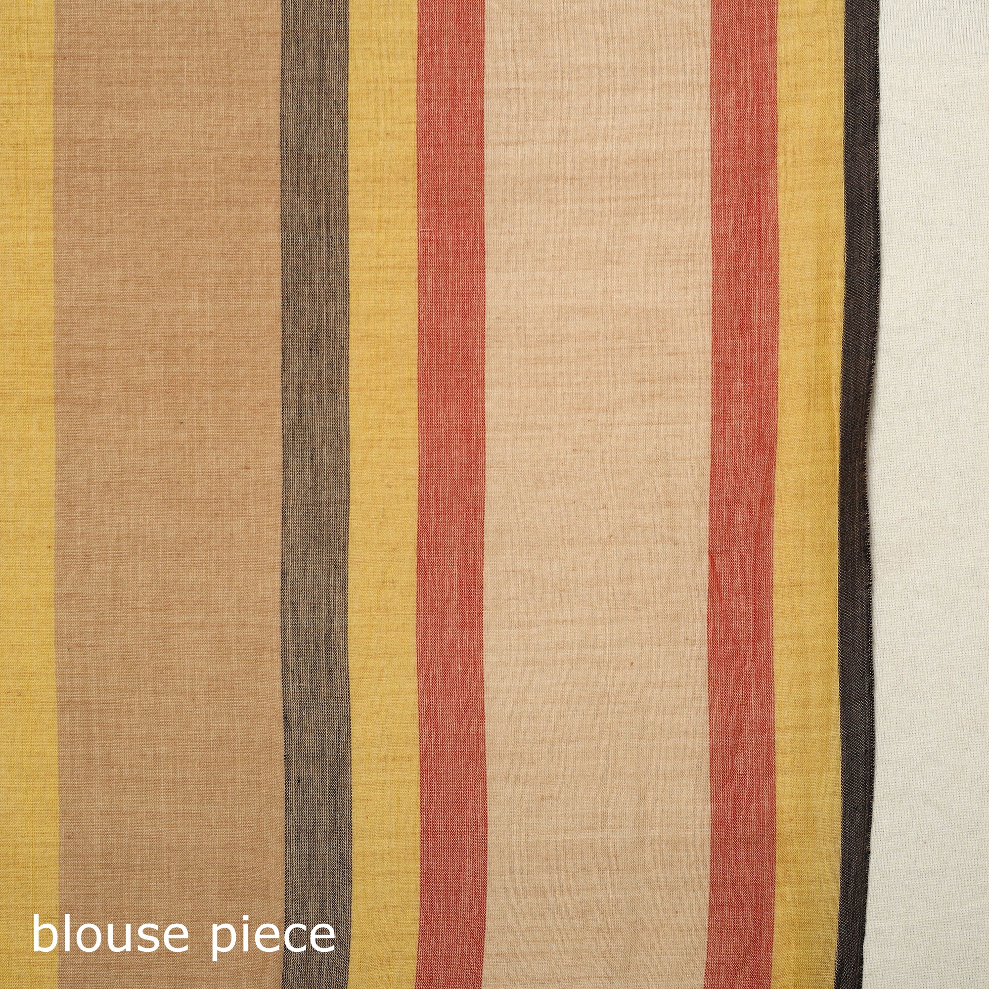 Fine quality beige bengal border pure handloom cotton saree. The handloom experience (soft, comfortable and durable) is due to the human handling of the yarn in the weaving process. As a result, yarn and the fabric are much less stressed and damaged. Hand woven cotton is known for its breathability as compared to mill made cotton. This implies that it allows more air penetration making it cooler, softer and more absorbent. It keeps you cooler in summers and warm in winters.