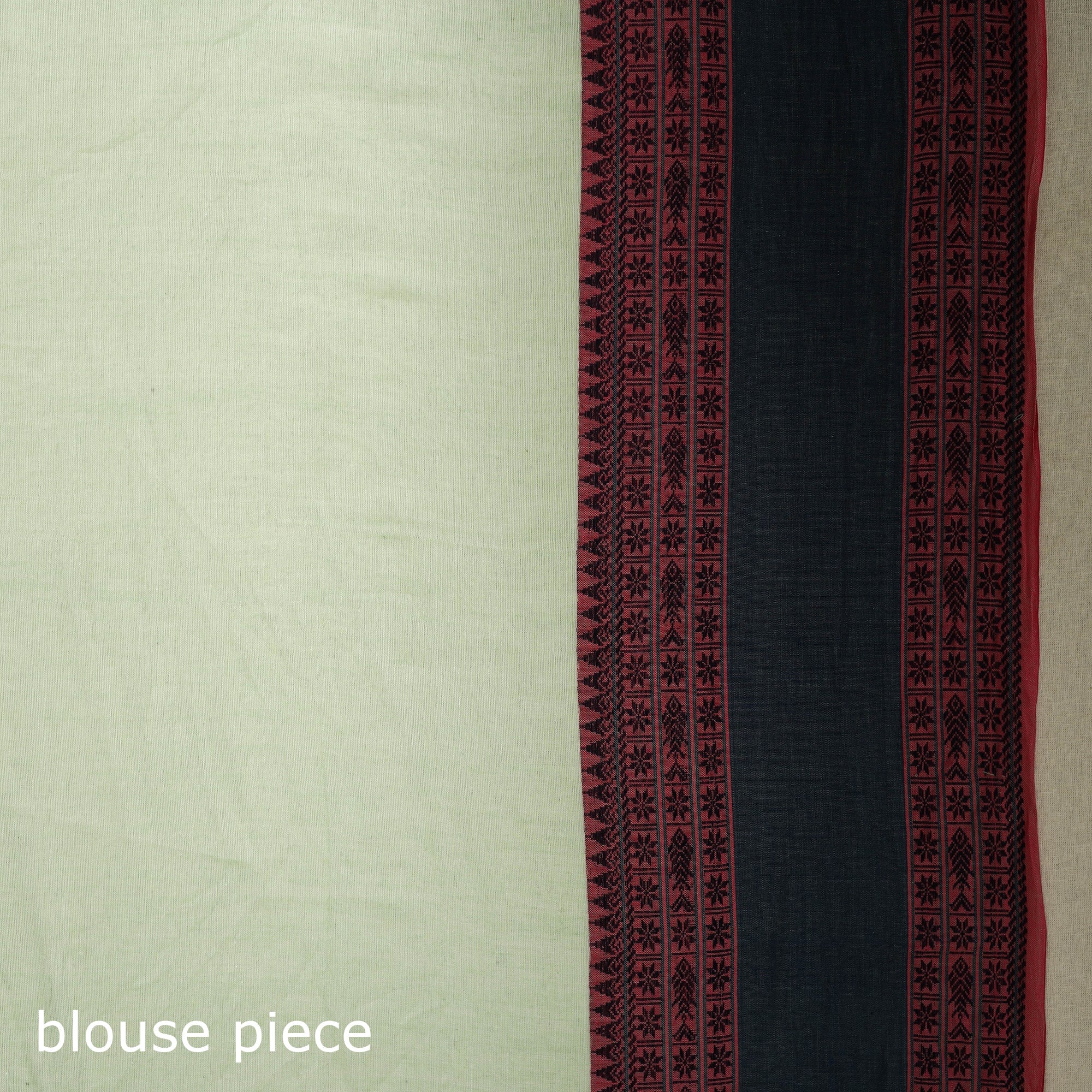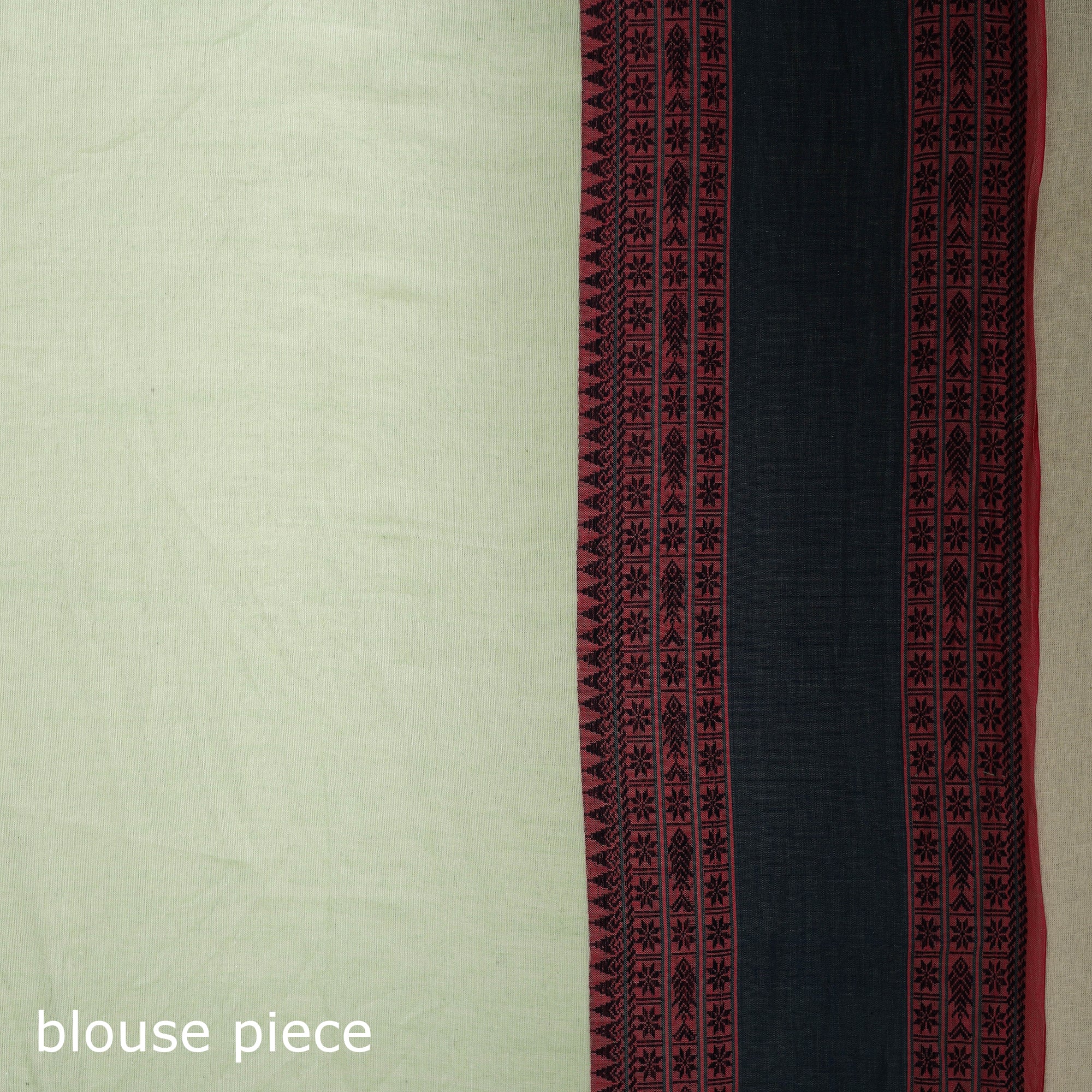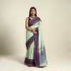 Fine quality green bengal border pure handloom cotton saree. The handloom experience (soft, comfortable and durable) is due to the human handling of the yarn in the weaving process. As a result, yarn and the fabric are much less stressed and damaged. Hand woven cotton is known for its breathability as compared to mill made cotton. This implies that it allows more air penetration making it cooler, softer and more absorbent. It keeps you cooler in summers and warm in winters.